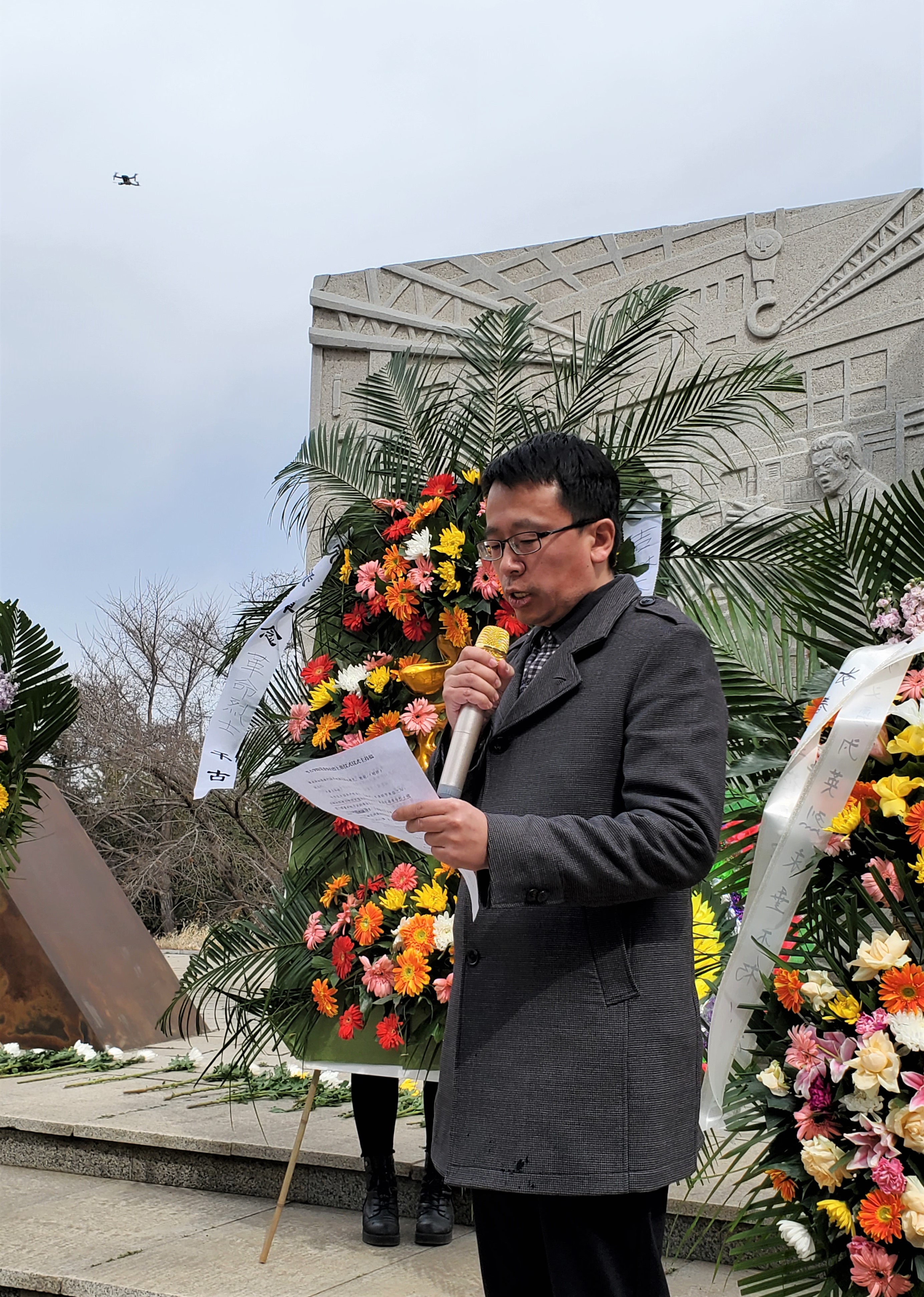 党委副书记侯建峰主持。在沉重的哀乐声中,4名党员敬献了花圈,全体人员致敬默哀。