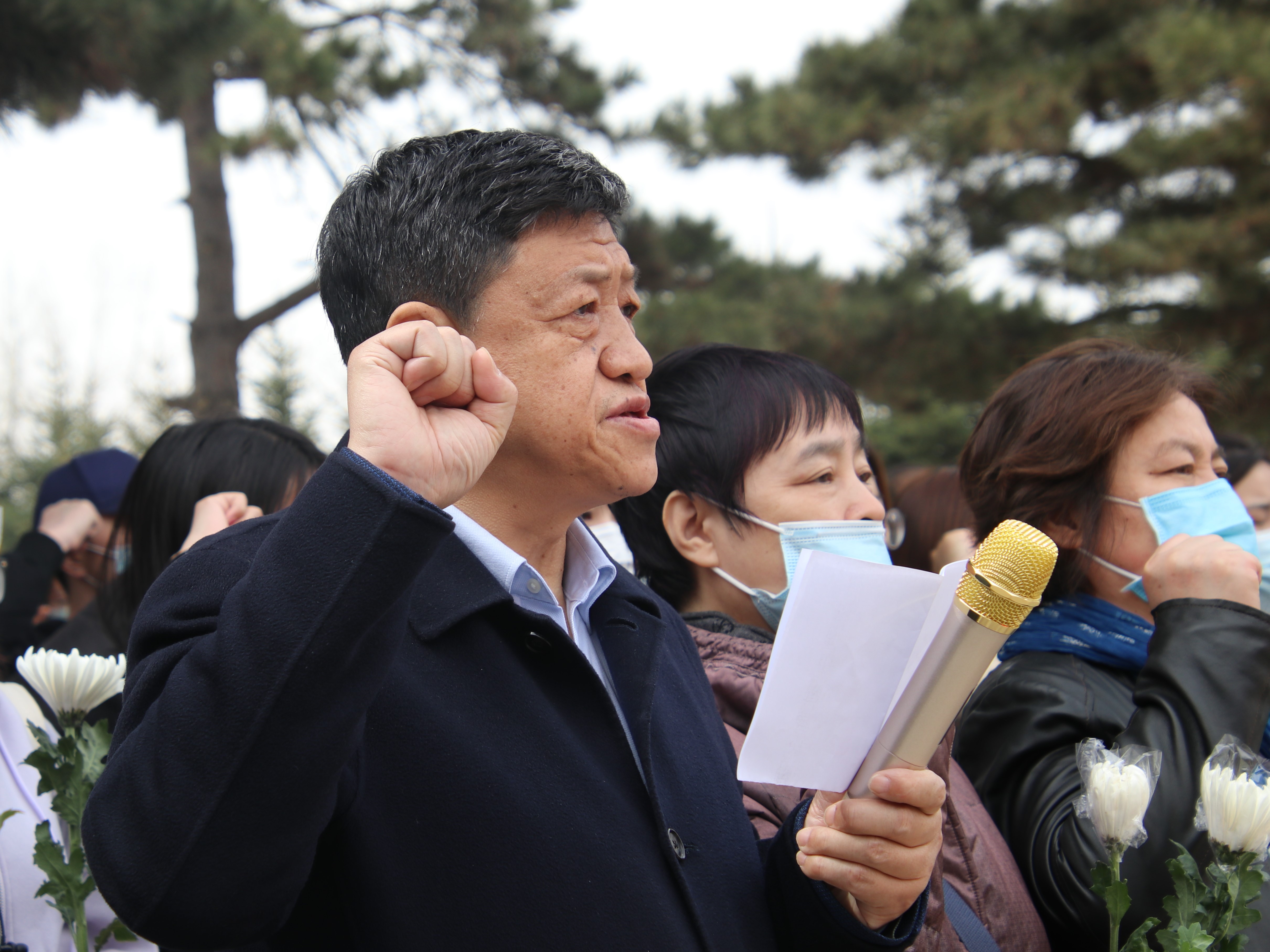 院长赵宾福带领全体党员重温了入党誓词。时间悄然流逝,信念从未改变。郑重的誓言在苍松翠柏中回荡,深入陵园深处,告慰英魂。