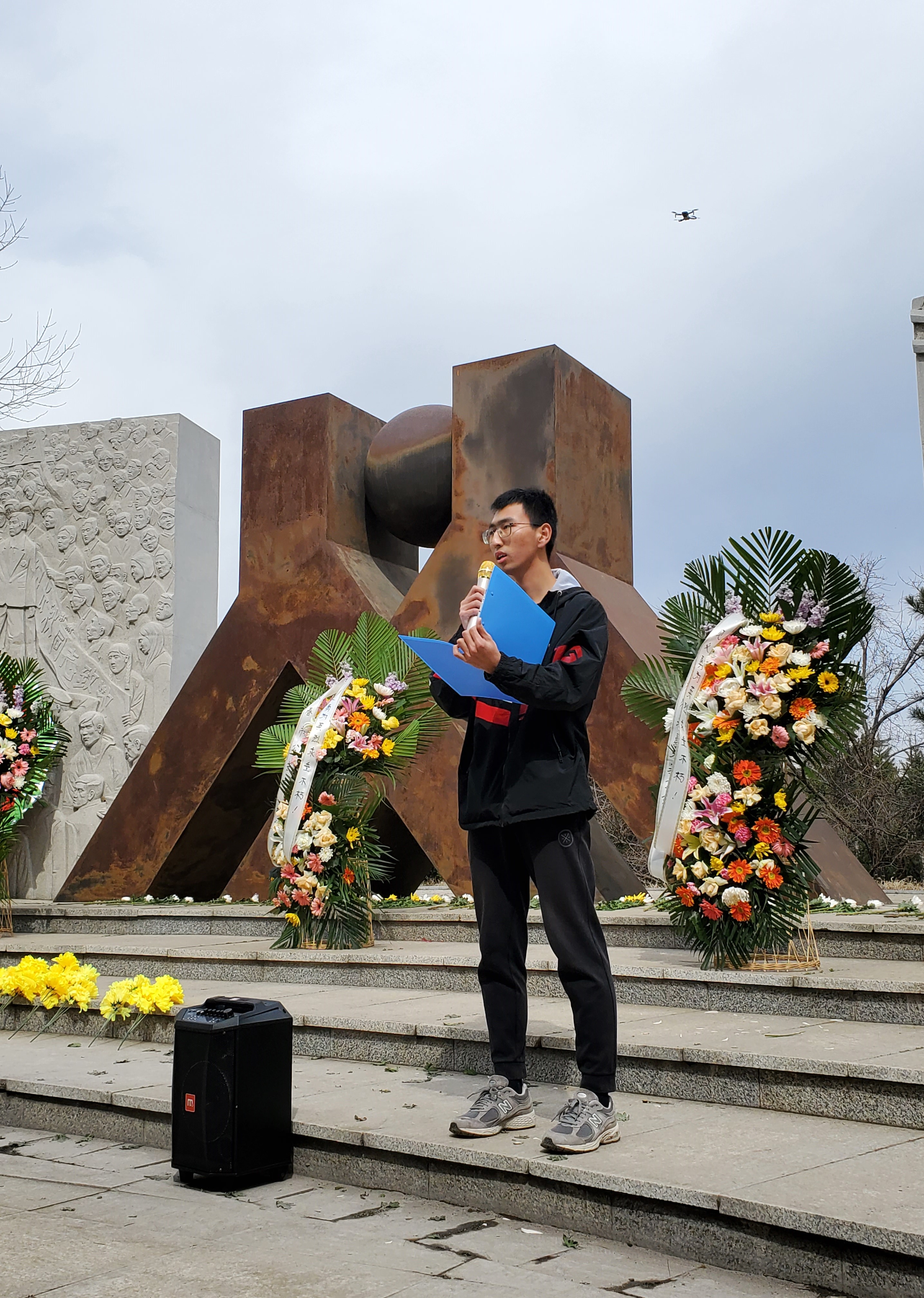 学生代表田兆鲲讲话。表示将追寻先烈的足迹,学习他们追求真理、是非分明、立场坚定的优秀品质,投身于中国特色、中国风格、中国气派的考古学建设中,为实现中华民族的伟大复兴而努力奋斗。