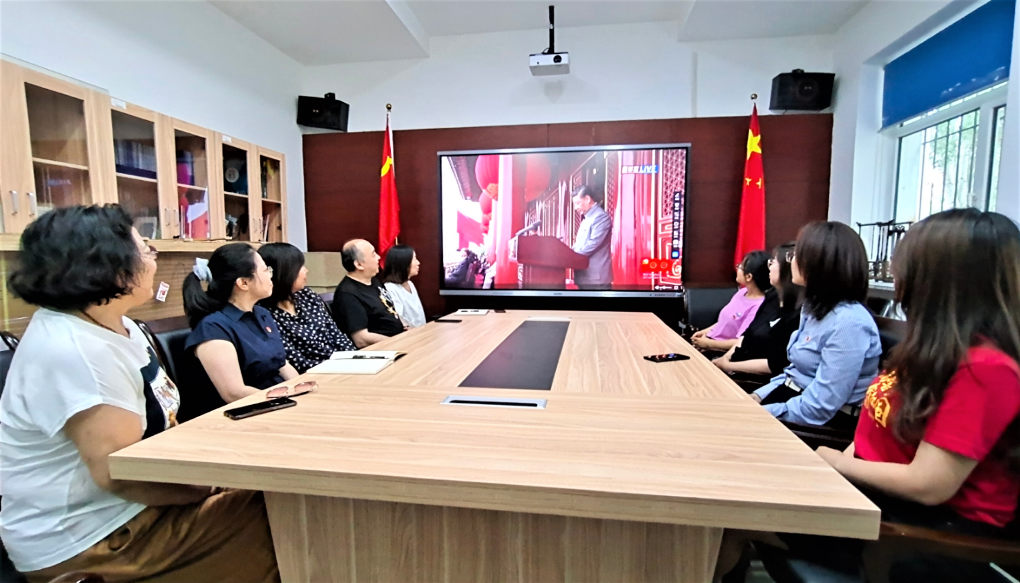 党委将收看形式分为支部和小组两个部分。行政教工党支部和考古学及博物馆学教师党支部在学院会议室、考古与艺术博物馆教工党支部在博物馆会议室、本科生党支部在学院党团活动室进行了集中收看。其他党支部分解为党小组在寝室、教研室或办公室收看。