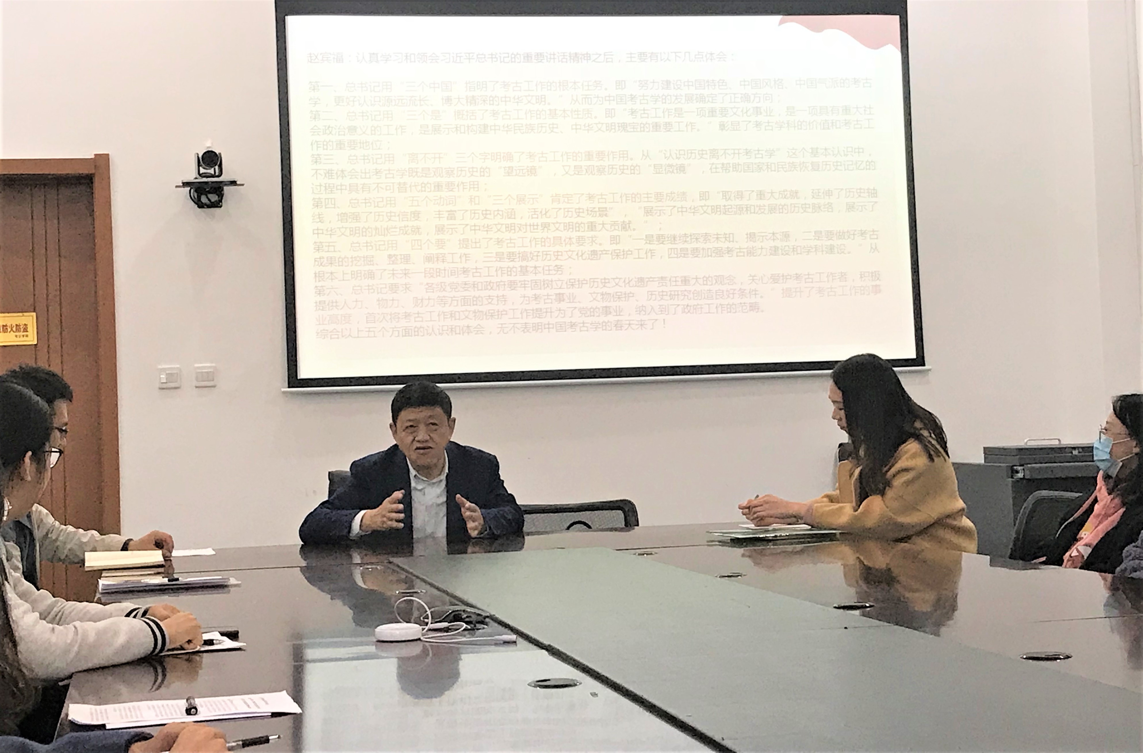 走在了整个学科的前面。习近平总书记这次讲话是党向考古学科发出的号召。支部里的党员是考古队伍中最高级的知识分子,肩负重大责任,身为考古人,要勇于担起这个重担,带着自己的思考深入学习体会这次讲话精神,不能浮于表面,要知行合一,真正做到学以致用,更好地服务于祖国和人民。