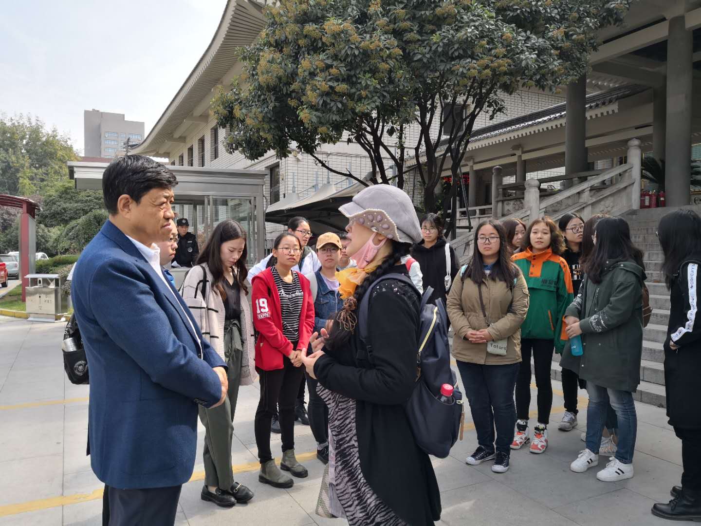 赵院长还详细询问了学生的工作学习和生活情况,代表学院表达了全院师生对在陕西历史博物馆实习师生的关心与问候,鼓励学生珍惜此次难得的在国家级大馆的实习机会,在工作中认真钻研、积极探索,在实践教学中体会课堂理论知识,以饱满的热情完成博物馆实习。并与师生合影留念。