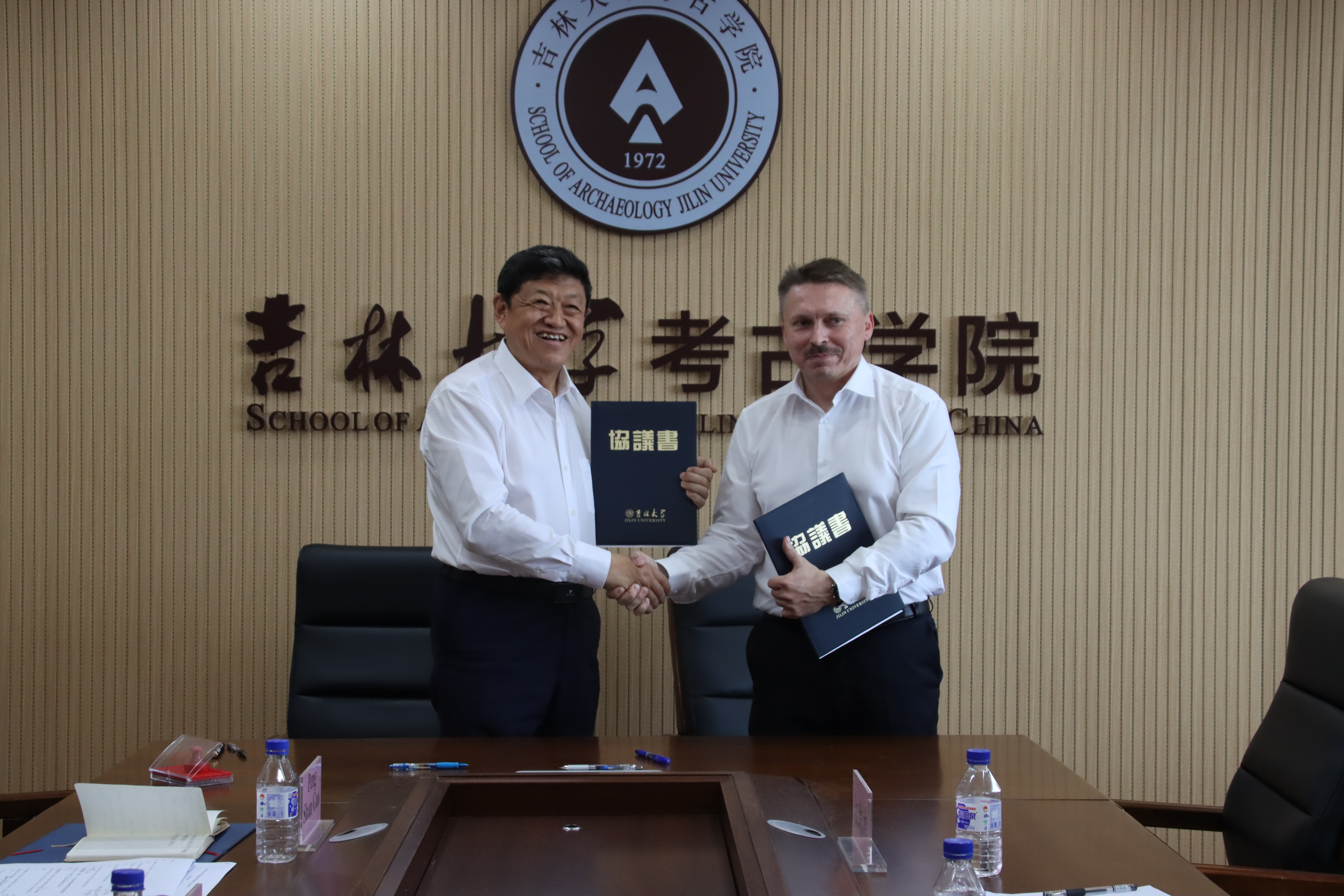 与俄罗斯科学院物质文化史研究所合作协议》签字仪式。仪式上,赵宾福院长与帕列科夫·安德烈·夫拉基米拉维奇所长共同签署并交换了协议。