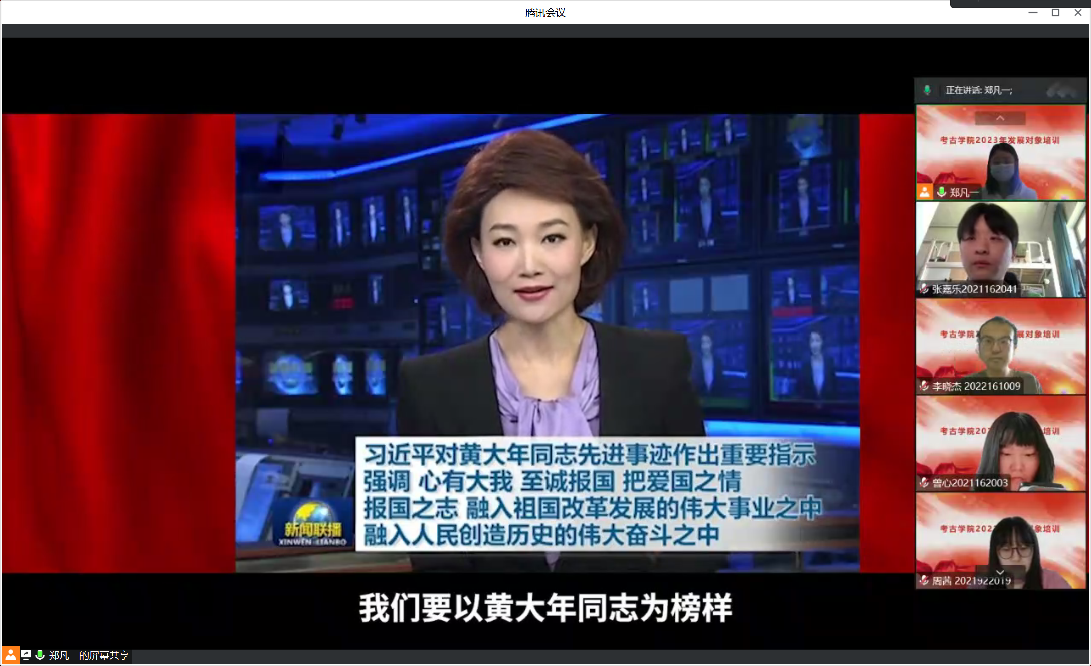 深入贯彻落实习近平总书记对黄大年同志先进事迹作出重要指示工作回顾》和《巍巍吉大》纪录片。引导积极分子、发展对象学习黄大年同志“心有大我,至诚报国”的精神,详尽了解西瓜视频