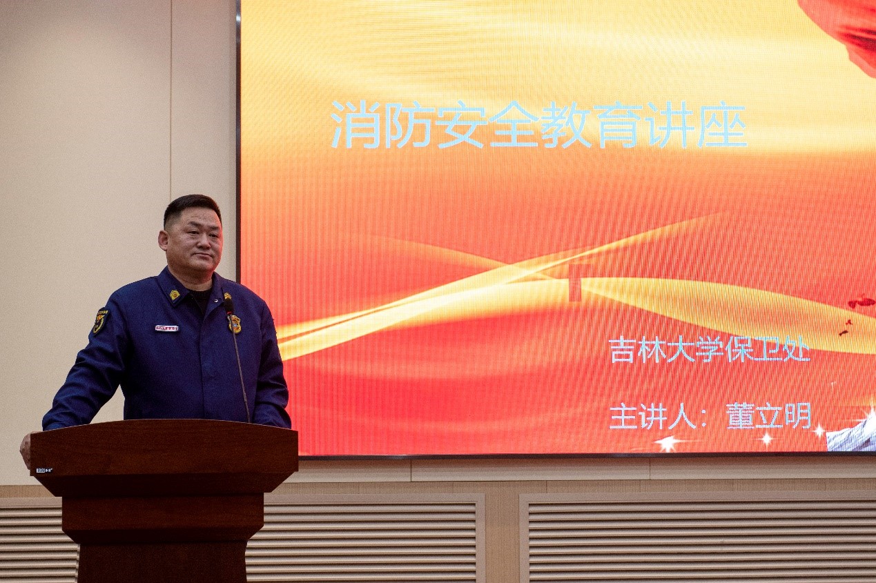 开幕式后,开启了本届实验室安全文化月的第一项活动 ----“消防安全知识讲座及消防逃生演练”,由保卫处消防科副科长董立明主讲。通过一系列事故案例,指出了实验室消防安全的重要性,结合学院实验室工作实际,对实验室消防隐患及风险点做了详细介绍,重点强调了实验室消防安全的注意事项。最后,详细讲解、现场演示了灭火器和消防面罩的使用方法和注意事项。