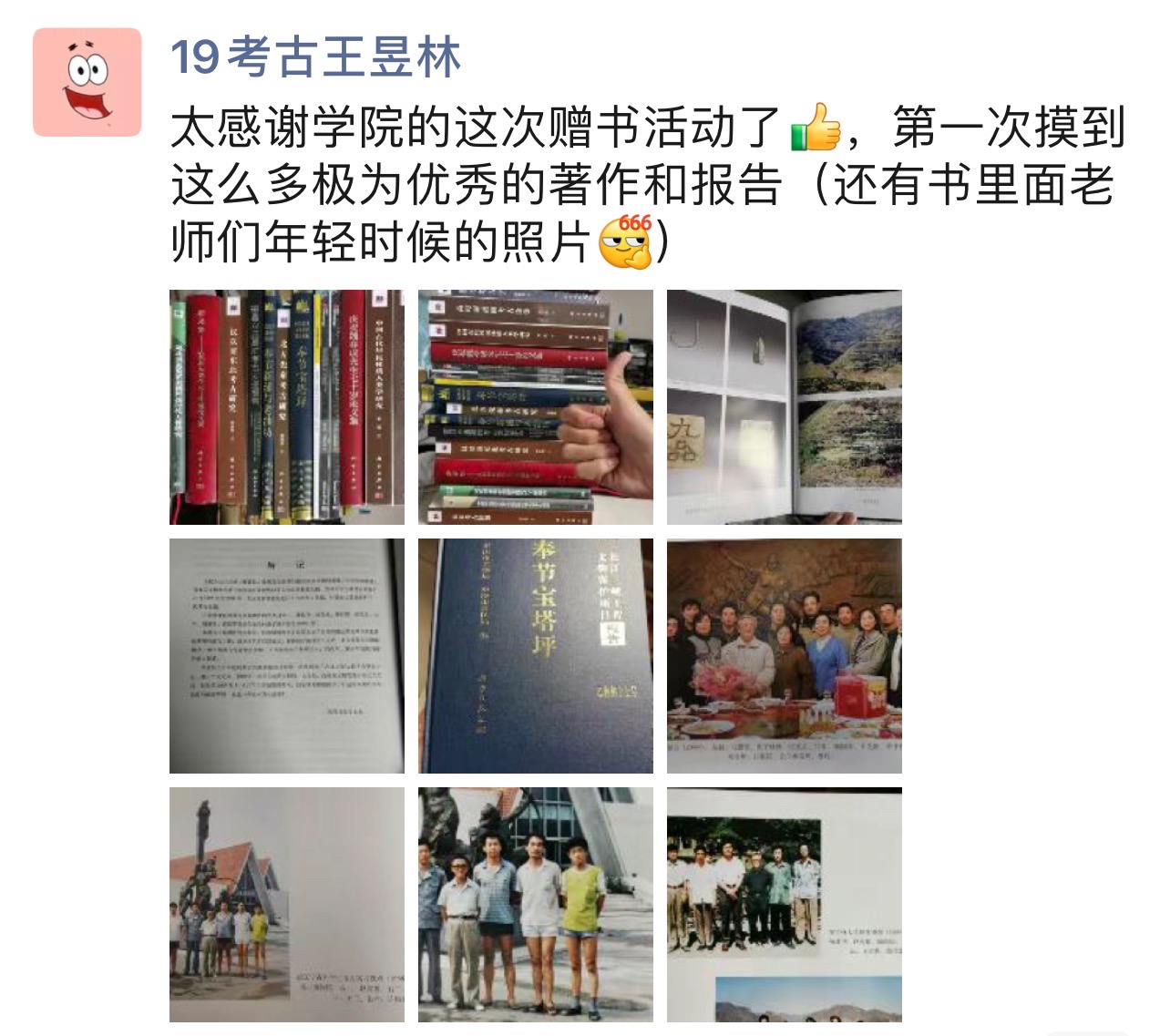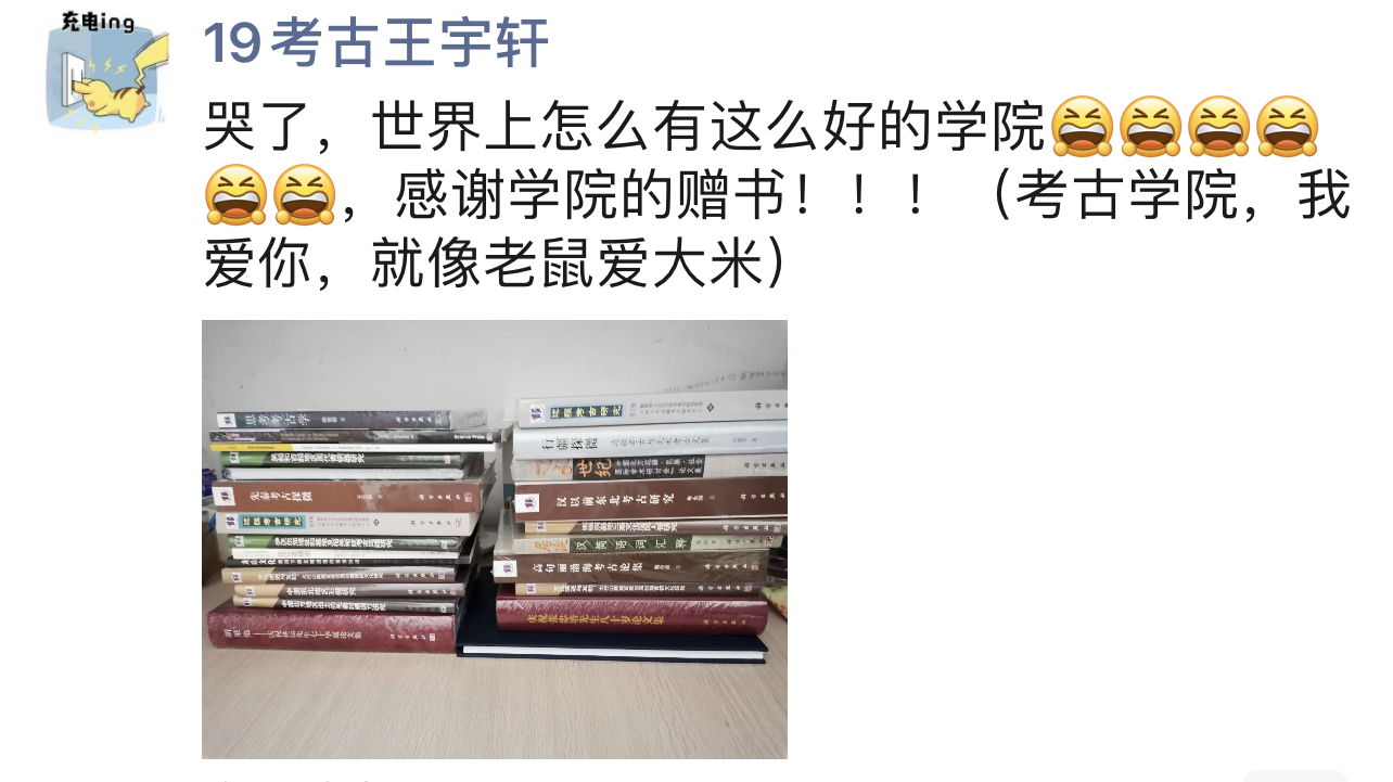 党委向全院师生赠送了近万册专业书籍,共计种类80余个,价值六十余万元人民币。书籍内容涵盖了史前考古、历史时期考古、环境考古、外国考古等多个学科方向,对提升西瓜视频