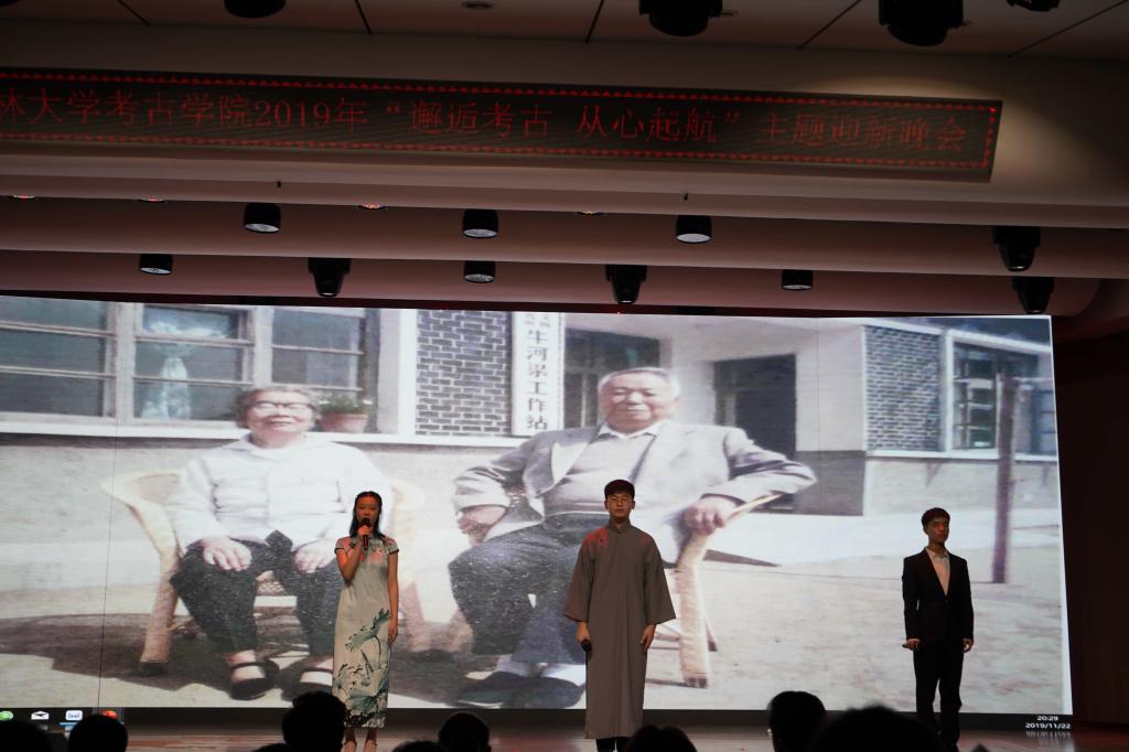 在朗诵《追逐》中,学生演员们用真情的演绎还原了中国考古学派创始人苏秉琦先生与夫人解慧珍的爱情故事。从家庭生活的侧面展现了苏秉琦先生一生追逐考古事业,重建中国史前史,提出中华文明演进理论的伟大创举。