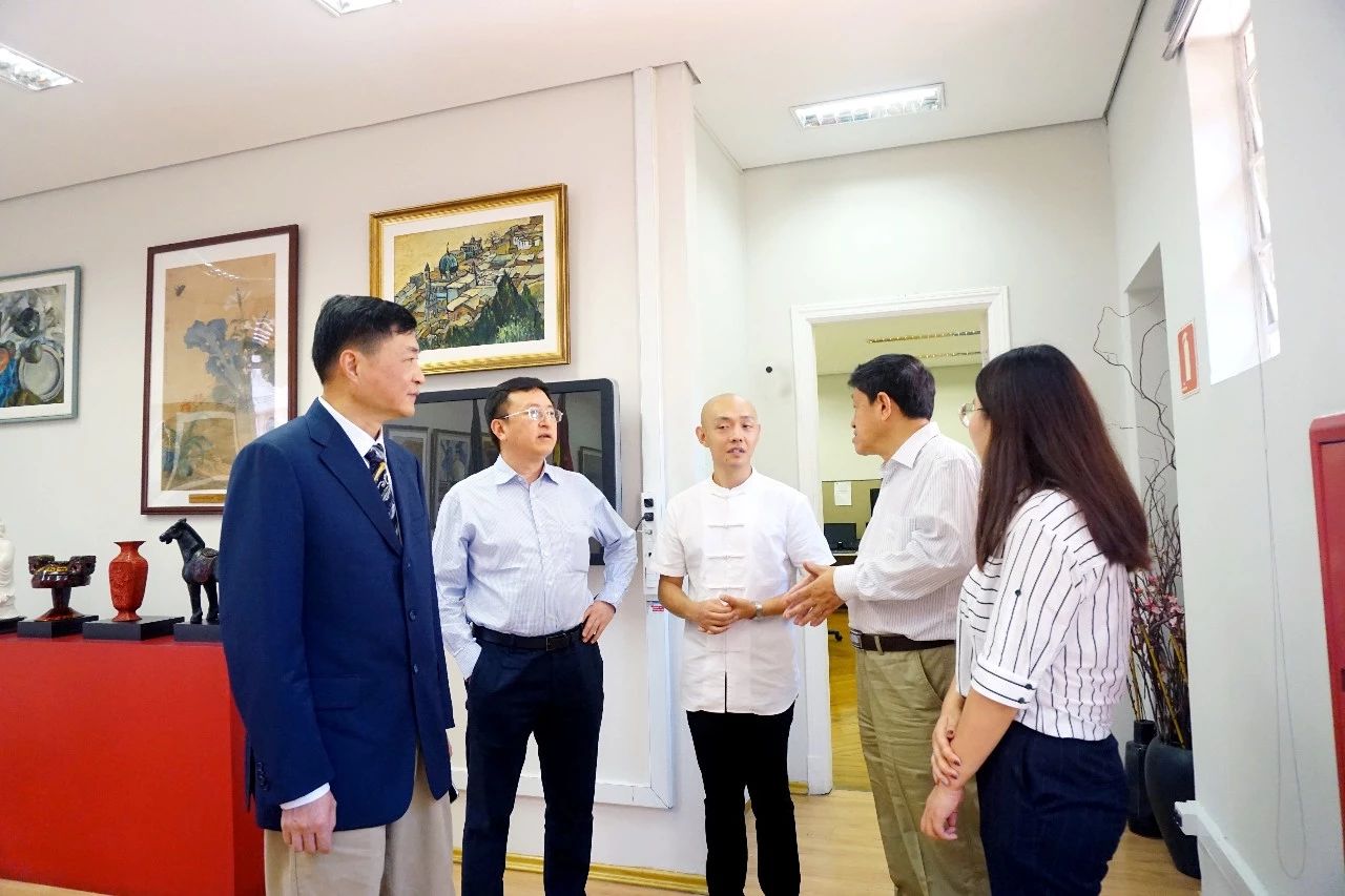 12月15日,代表团应邀访问了巴西圣保罗州立大学孔子学院并与孔子学院教师和志愿者代表座谈。双方分享了各自在中国学研究、汉语言教学、孔子学院建设等方面的做法和经验。吴振武表示,我校与阿根廷布宜诺斯艾利斯大学共建的孔子学院与巴西圣保罗州立大学孔子学院同处于拉丁美洲,两家孔子学院可共享中国学研究和汉语教学资源,共同在坚持汉语语言培训与教育的同时,朝着文化双向交流、职业技能培训等“汉语+”方向发展,最大程度为两校师生、当地民众、社会各界、中外资企业等提供各类优质汉语教学和社会服务。