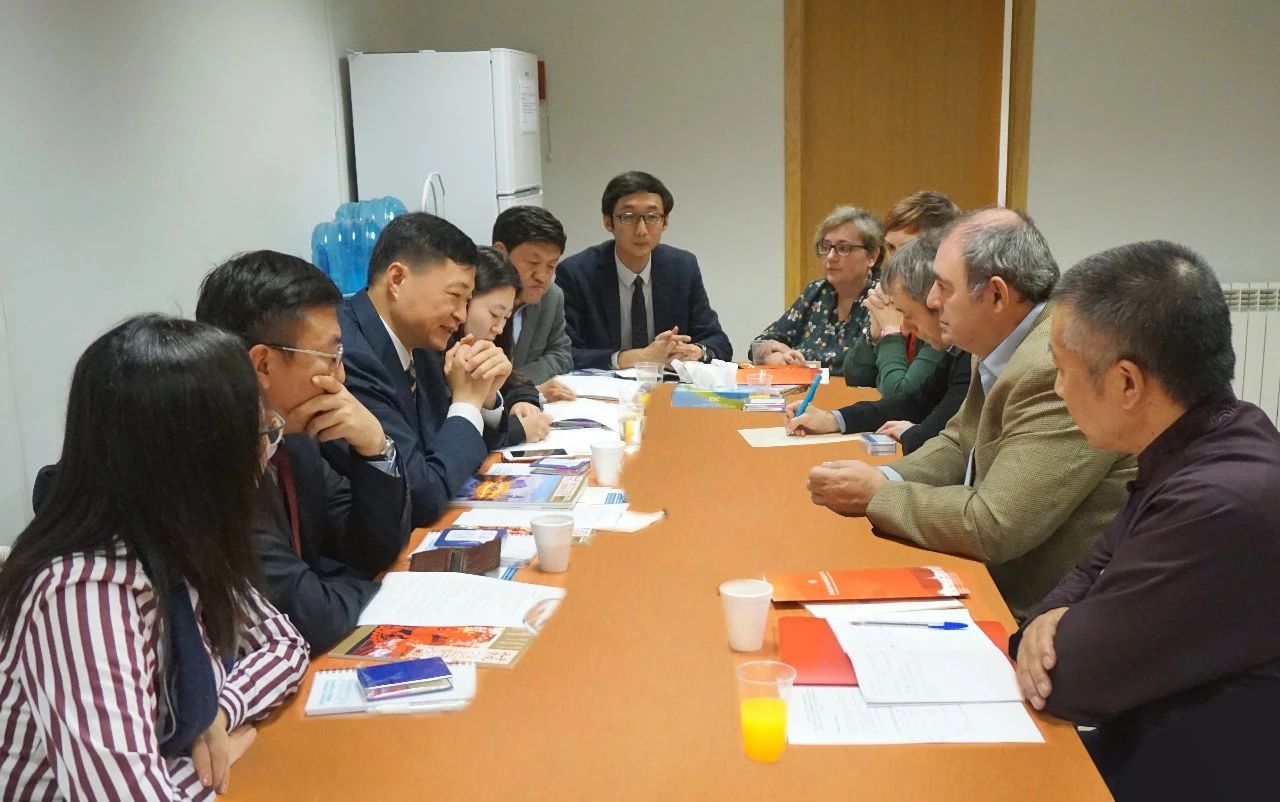 12月13日,访问瓦伦西亚大学孔子学院期间,代表团与瓦伦西亚大学孔子学院外方院长安文龙(Vicente Andreu)、孔子学院中方院长张代生等就孔子学院的建设与发展、承办孔子学院总部/国家汉办的孔子学院多语种期刊等问题进行了交流。随后,代表团与瓦伦西亚大学语文学、翻译与传媒学院院长安帕罗·瑞克(Amparo Ricós)、科研副院长赛里希奥·玛鲁安达(Sergio Maruenda)、国际事务副院长安娜 ·罗萨·卡里洛(Ana Rosa Calero)等,就两校的外语语言教育、教育资源共享、学生联合培养和科研合作等进行了交流,双方将共同推进两校建立合作伙伴关系,进而促进相关学科务实合作。