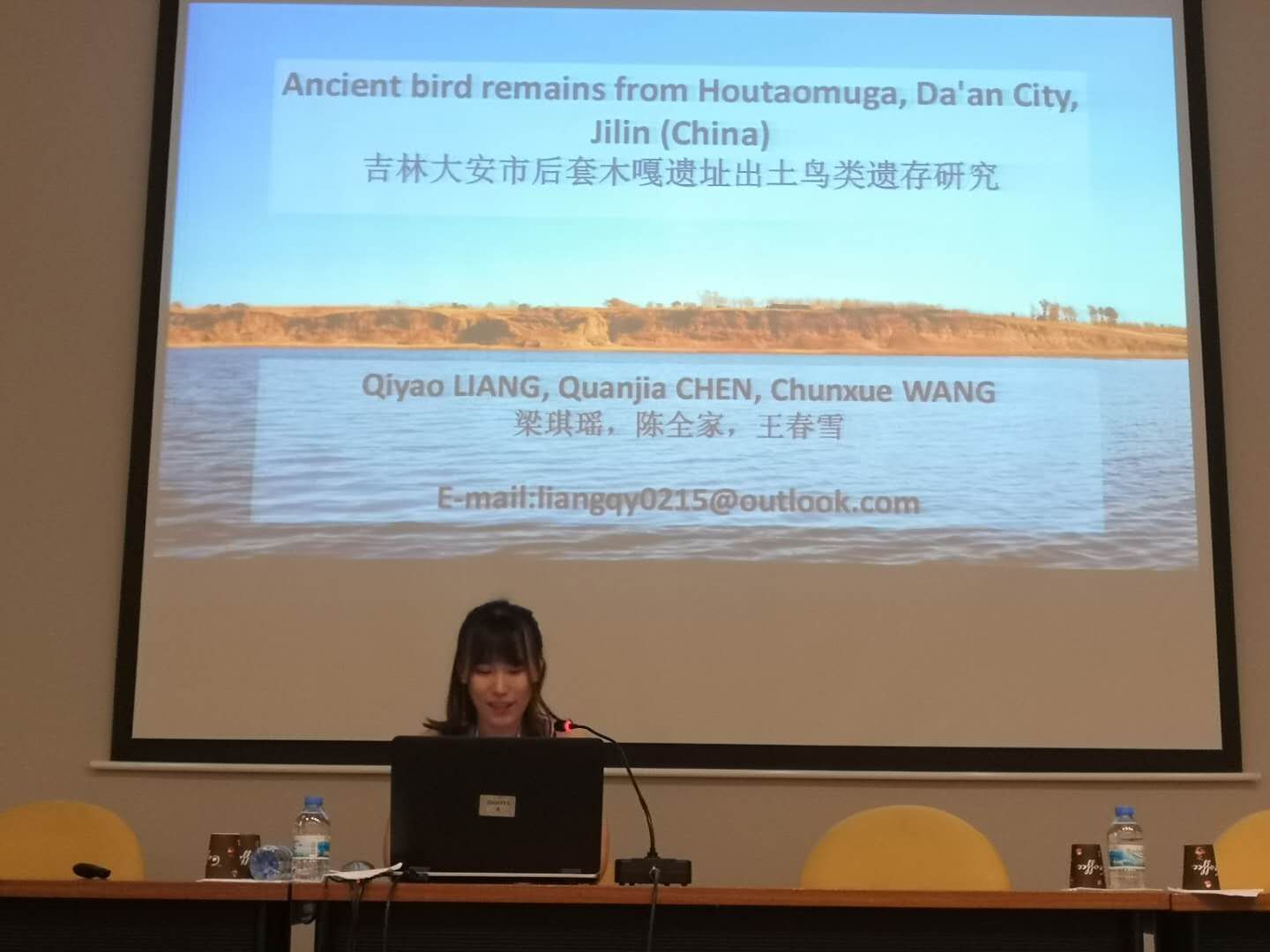梁琪瑶以“Ancient bird remains from Houtaomuga,Da’an City,Jilin(China)”为题对后套木嘎遗址出土的鸟类遗存进行种属鉴定,痕迹分析,遗址使用季节和周围生态环境的相关探讨,加深了对遗址性质的理解。