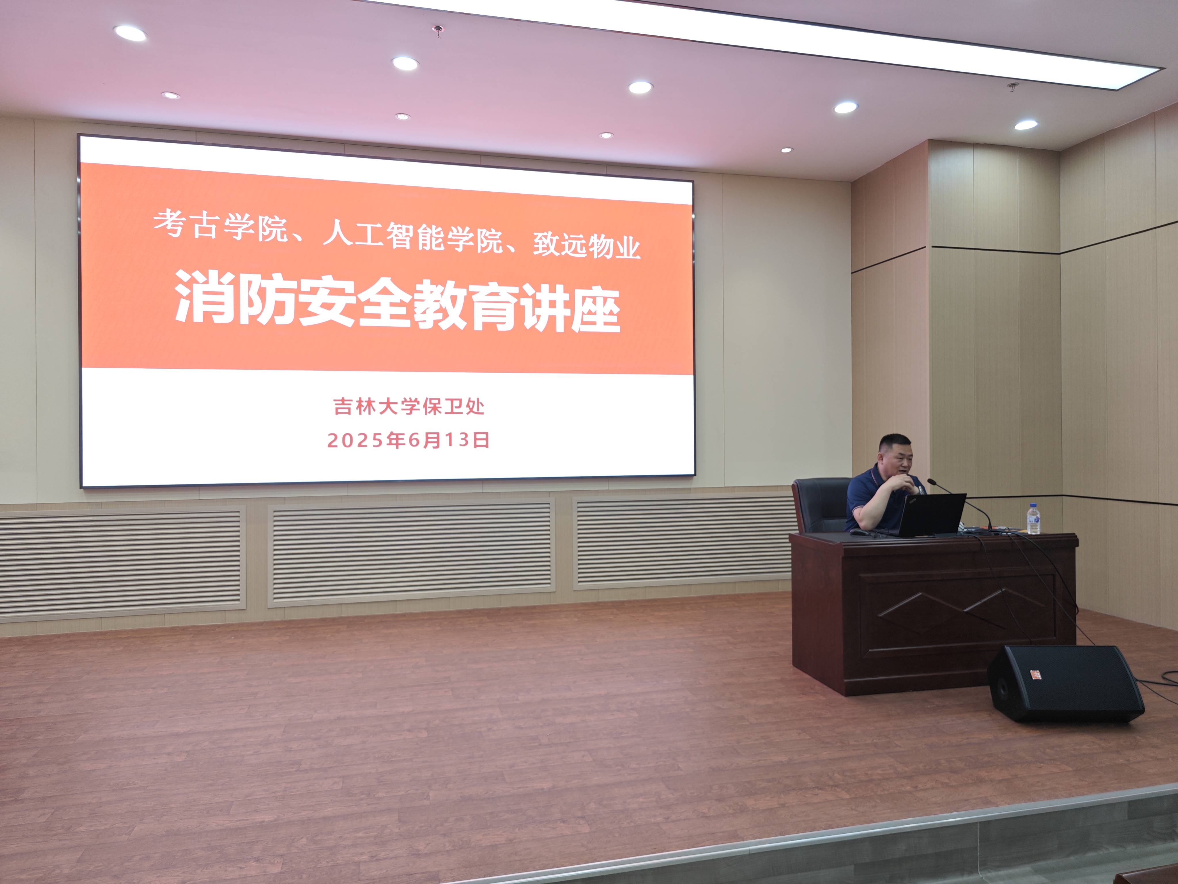 最后邀请保卫处消防科科长董立明做消防安全知识讲座,从强化安全意识、学校火灾形势、落实责任制度、加强安全管理、夯实四个能力等5个方面,结合实际案例和火灾事故视频,提高大家的消防安全意识和应急处置能力。