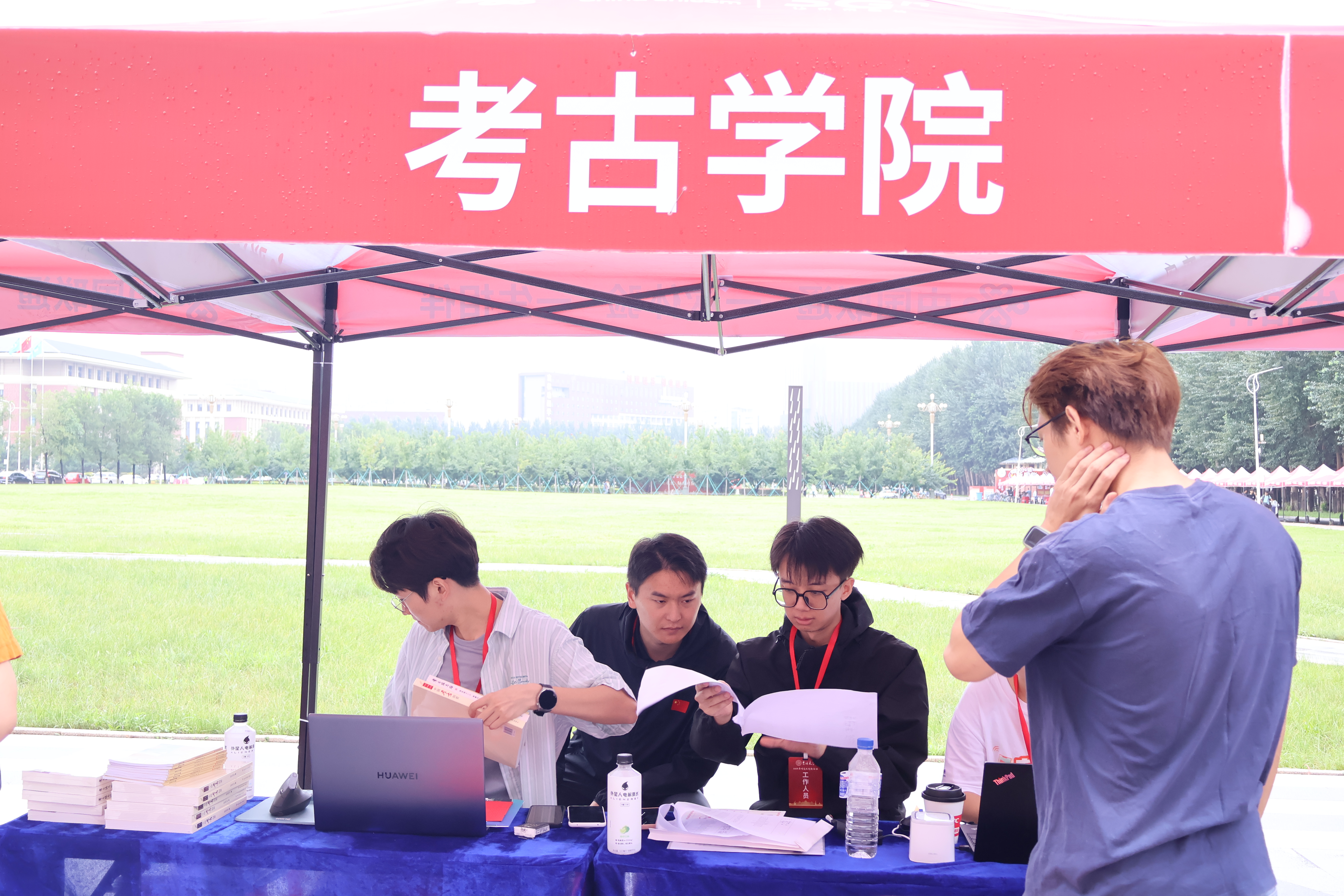 。迎新志愿者们穿梭在雨幕中,为新生撑伞指路,让初遇的温暖直抵心田。迎新工作人员饱含热情、有条不紊地引导同学完成入学报到证收取、人脸识别信息确认、材料袋发放、礼品赠送等环节。在赠礼部分,学院贴心为新生们准备了《考古张忠培》与《中国考古纲要》两本书籍。期望同学们向老一辈考古人学习,继承并发扬“择一事,终一生”的钻研品质。报到环节完成后,志愿者指导新生进入公寓办理住宿手续。在简单轻松的报到与入住流程完成之后,新生们便真正成为吉大校园的一份子。