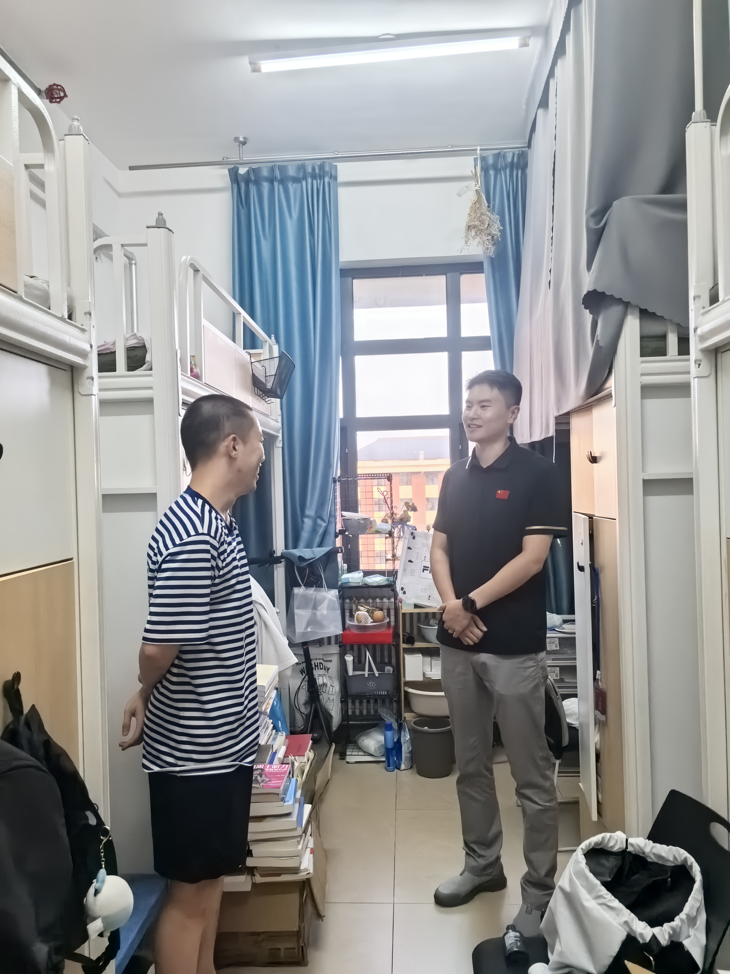 在检查过程中,辅导员依德日贡认真细致地查看了每一间寝室的电器使用、消防设施等情况,着重排查可能存在的安全隐患。同时,还与留校研究生们亲切交流,详细询问他们的学习进展、生活需求以及遇到的困难。对于同学们提出的问题,辅导员都耐心倾听并给予了及时的解答和建议。