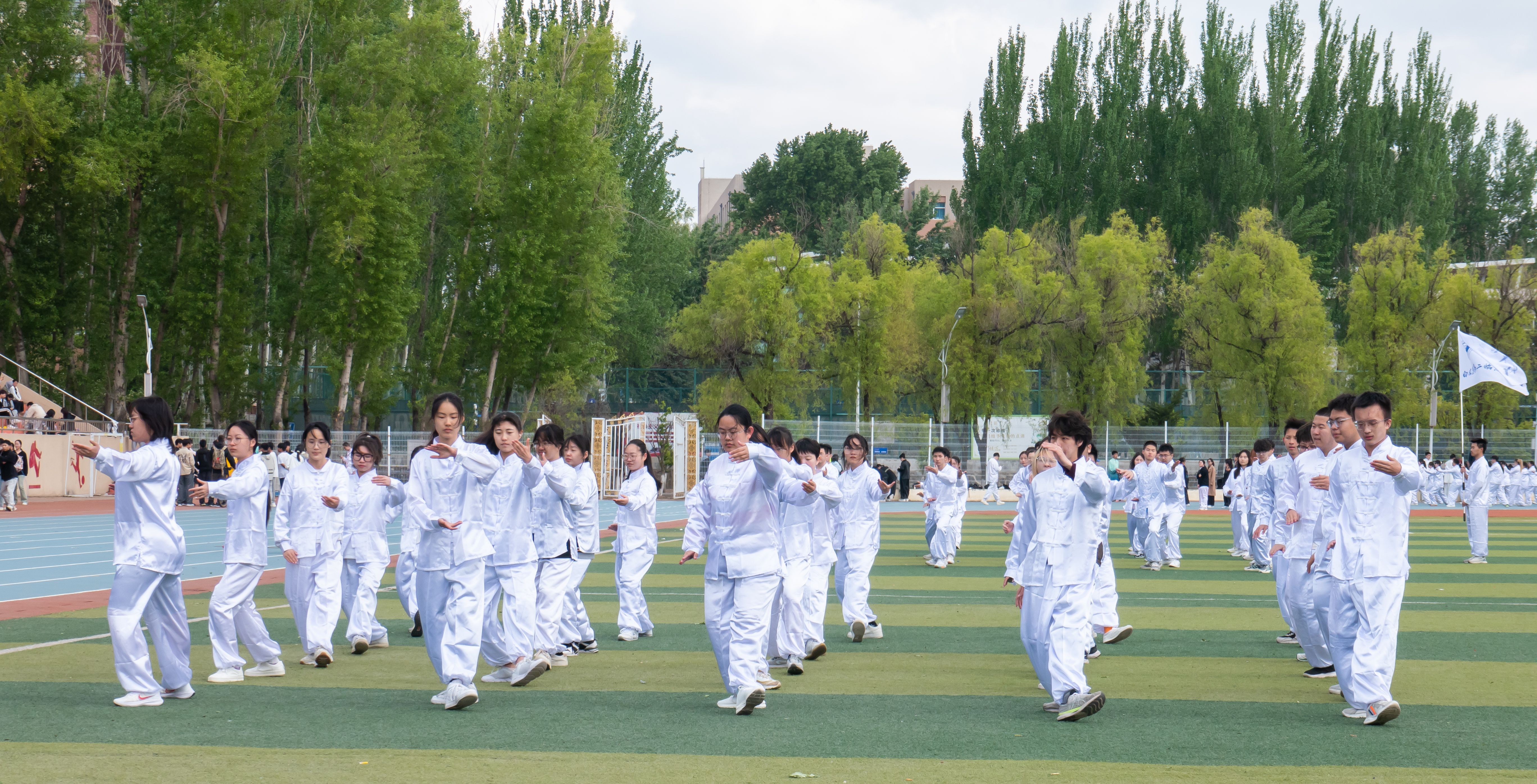 在体育学院老师的统一指挥下,各参赛方队迅速集结成队形,接受强化学习。老师亲自演示了太极拳的招式,并细致讲解了动作要领。同学们聚精会神地聆听,专注地模仿动作,从中获得了不少新的领悟与启发。最后,全校同学齐聚一堂,再次进行操演。这一次,西瓜视频