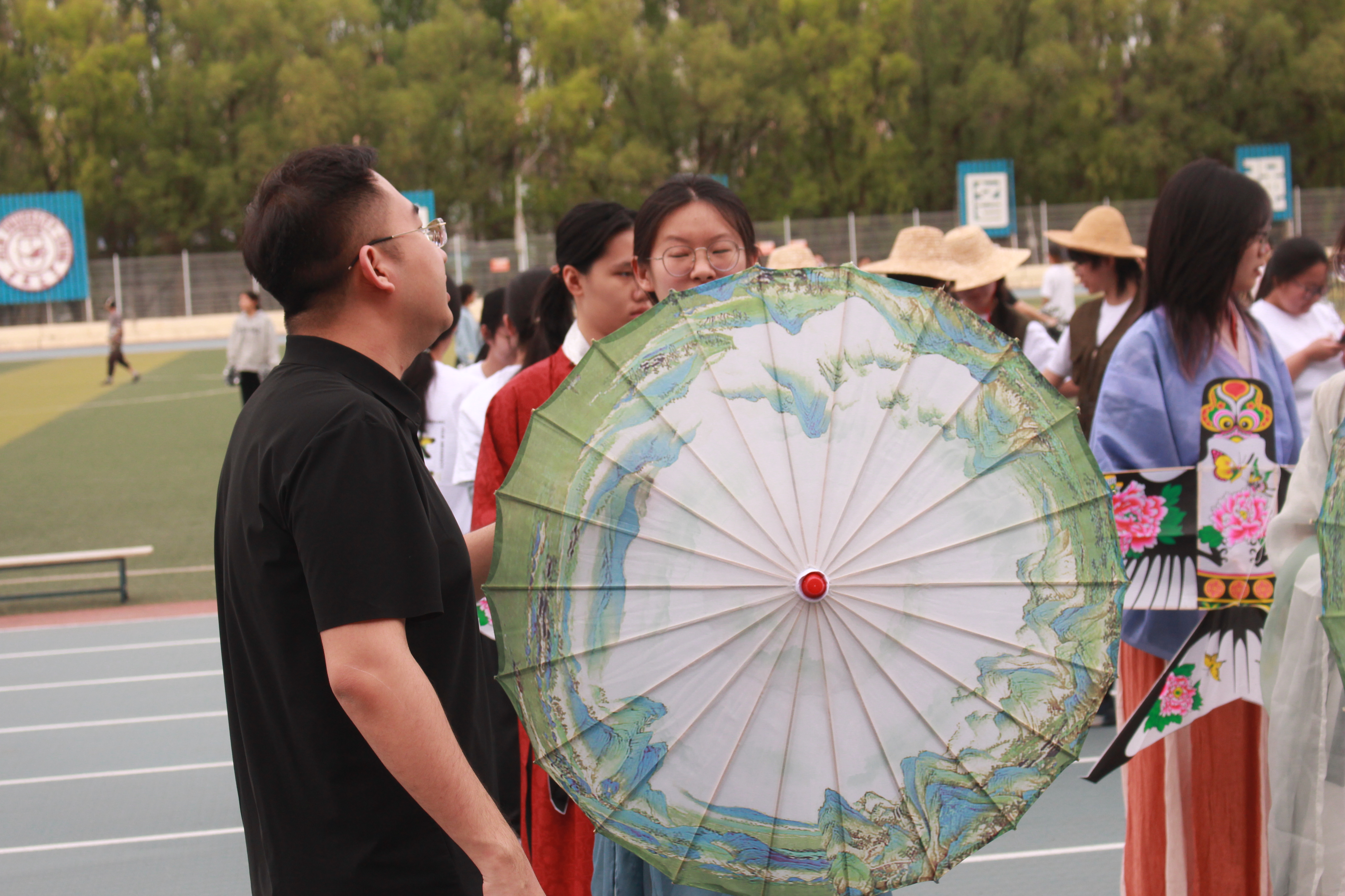 身着汉服的同学不断调整纸伞与纸鸢的展示方式,以期呈现更好的视觉效果。模拟发掘的同学精益求精,修改动作错误,展现考古学人求实求真的严谨态度。