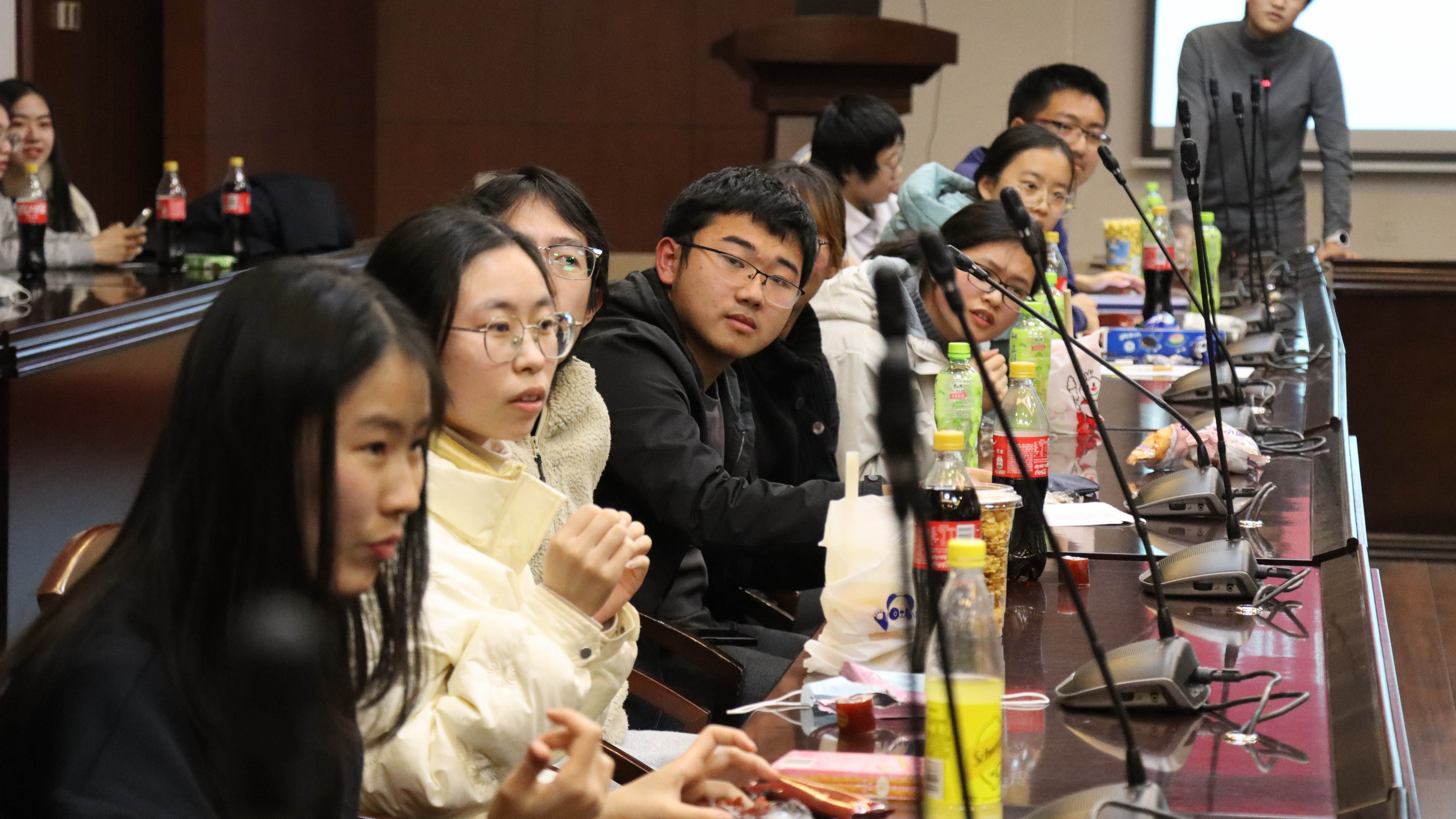 随后便是破冰游戏环节,共分为两项进行。第一项进行的是益智反应游戏,同学们依次进行报数,需要避开含“7”和“7”倍数的数字。这一环节调动了同学们参与破冰活动的专注力与积极性,几度将气氛推向了高潮。第二项为猜词游戏,由唐诗雨同学出题,同学们以自愿参加的方式,仅通过提问的方式与“是否”的反馈完成猜词任务,在25次提问内猜出正确答案的同学可获得奖励。猜词游戏过程充满趣味且不乏专业性,增强了同学们之间的默契与配合。