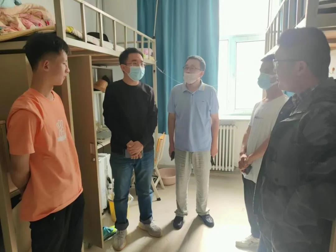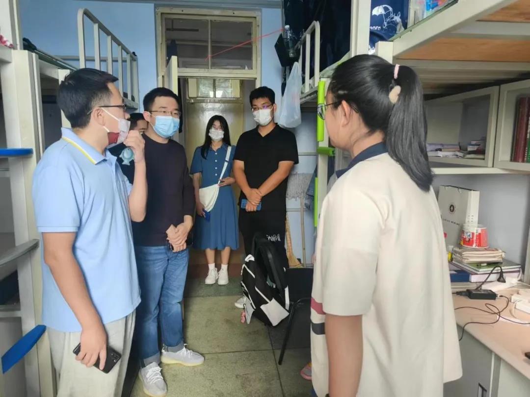党委副书记兼副院长侯建峰老师代表学院党委书记王巍老师、院长赵宾福老师,与22级辅导员邱泽涵,辅导员助理王克豪、张灵江、张凤怡、禹明岐一同前往北苑学生二公寓和南苑学生二公寓,走访看望了2022级本科新生。