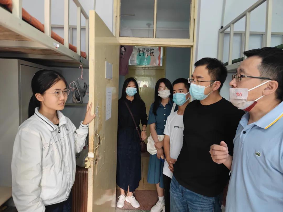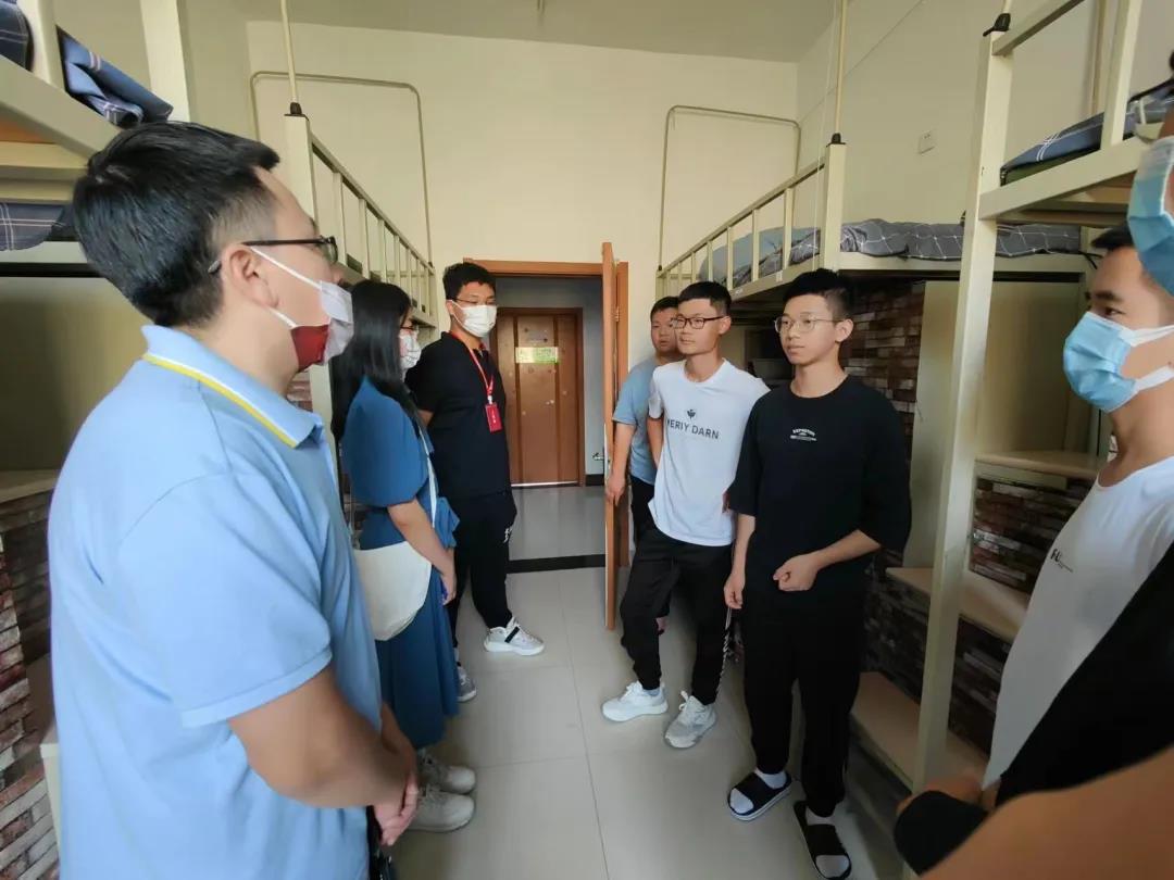 探访队伍走进每一间新生寝室,悉心查看了同学们的住宿环境,与同学们进行了亲切的交谈。他们细心询问了同学们来自的省份,询问同学们是否适应新的生活环境、是否适应校园生活,与同学们就生活和学习等方面的问题进行了深入交流,并叮嘱同学要及时向老师反映生活中的遇到的困难,老师们会帮助大家及时解决。同学们对老师无微不至的关心表示了感谢,一致表示对宿舍条件很满意,对自己选择的专业有很深的兴趣,对未来的大学生活充满了期待。