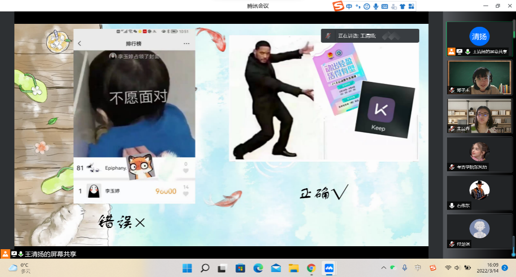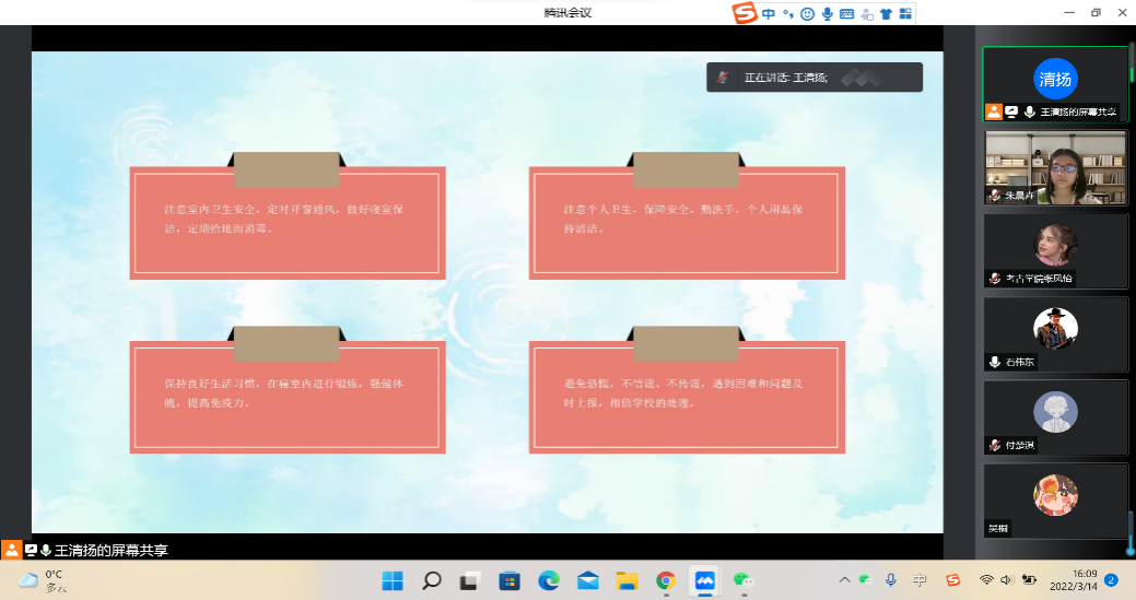 2021级古文字班于线上组织开展了疫情防控导学主题班会。会议由班长王清扬同学主持。