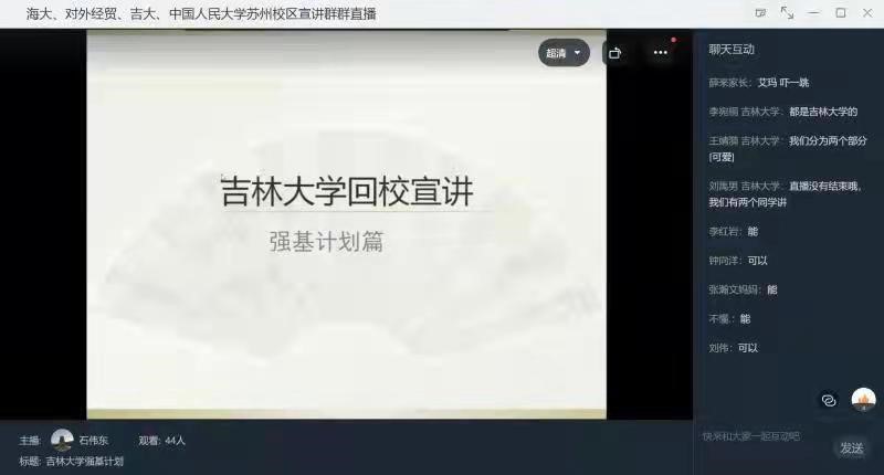 的校情校史、强基计划。直播过程中,各位家长和同学非常积极,提出了不少问题,团队其他成员则负责在群里进行答疑。