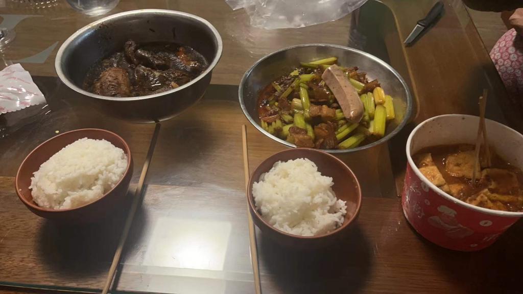 金柏宇同学则在自己亲身动手操作实践后,向我们介绍了一份独特的食物制作流程——炸麻叶。炸麻叶是中国北方地区传统小吃,是金柏宇的家乡春节习俗的一部分。炸好的麻叶因形似叶子,布满芝麻,被称为麻叶。制作麻叶要在盆里放入面粉、水、鸡蛋、小苏打、油、芝麻、盐。然后和面,将面揉成光滑团状,盖住盆口醒发。醒完面取出后继续揉,压扁擀平至薄厚均匀的圆形或矩形,这一步很关键,擀得越薄,炸完越脆,但过薄容易断。用刀将面宽度均等地分为几条,两条相叠,纵向切成几份,每份中间开一刀。拿起一份,将左侧的面从上往下从刀缝中穿出,右侧从下往上穿出,两手轻轻一拉,放入油锅煎至金黄,炸麻叶就大功告成,炸出来酥脆可口。