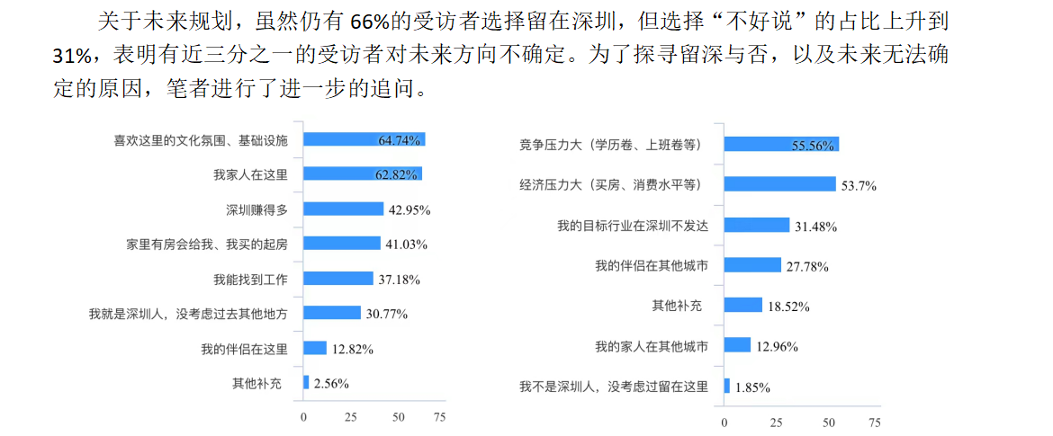 这份调查报告让黎宇菲更深入地了解了她的“深圳归属感”的来源,也让她意识到她的生存焦虑不仅仅是个体原因。最终,黎宇菲同学将这项调查发布在了网络上,也使更多人对深圳及深圳人的特质有了更深入的理解。