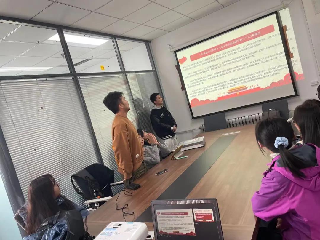 最后,由范俊杰做总结,我们回顾了党的光辉历史,学习了习近平总书记的系列讲话,明白了青年人所担的时代重任,我们要不忘初心,砥砺奋斗,以奋斗之我迈向新征程。