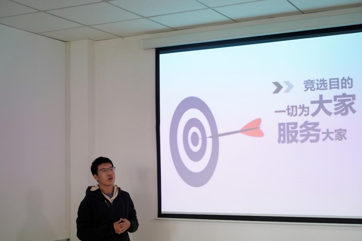 为保障纳新活动的高效进行,在面试开始前,全体团学组织负责人统筹协调,商讨了各部门的面试问题与选拔标准,对担任面试官的相关负责人进行了培训,并确定了以线上线下相结合的方式开展面试活动。参与面试的同学共被分为四组,在签到登记后,依次进入工会活动室开始面试。本次面试分为自我陈述与现场答辩两个环节,由面试官分别进行打分评级。在自我陈述环节,每一位同学都做了充分的准备,通过PPT、才艺表演等多种形式,阐述了对团学组织与应聘职位的认识和工作设想,表达了为学生与学院服务的决心与担当精神,充分展现出新时代青年大学生锐意进取、敢于争先的良好精神风貌。随后,面试官依据各位同学的自我陈述,结合各部门的具体工作要求,从实践能力、交往能力和个人优势等方面进行考察,提出了相应的问题。应试同学灵活答辩,展示了良好的面试风采。回顾整个面试过程,氛围活泼而又不失严肃,形式灵活而又不失严谨,同学们组织有序,各环节衔接流畅,取得了良好的面试效果。随着最后一位同学完成线上面试,下午4时50分,本次换届纳新面试圆满结束。