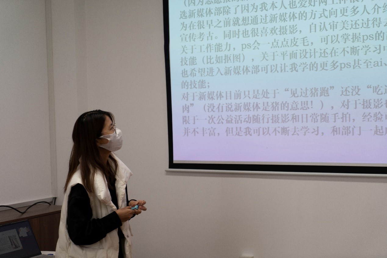 团委于工会活动室开展了第四届团学组织成员纳新面试工作。本次面试由柴光进、项悦、吴芊妤、査吉薇、卫江南五位团学组织负责人主持并担任线下面试官,在田野考古实践教学基地实习的团委副书记温景超、学生会主席团成员李广泽担任线上面试官。面试过程由团委宣传部通讯中心高洁负责拍摄并做会议记录。2021级新生共有37位同学报名参加了本次纳新面试。