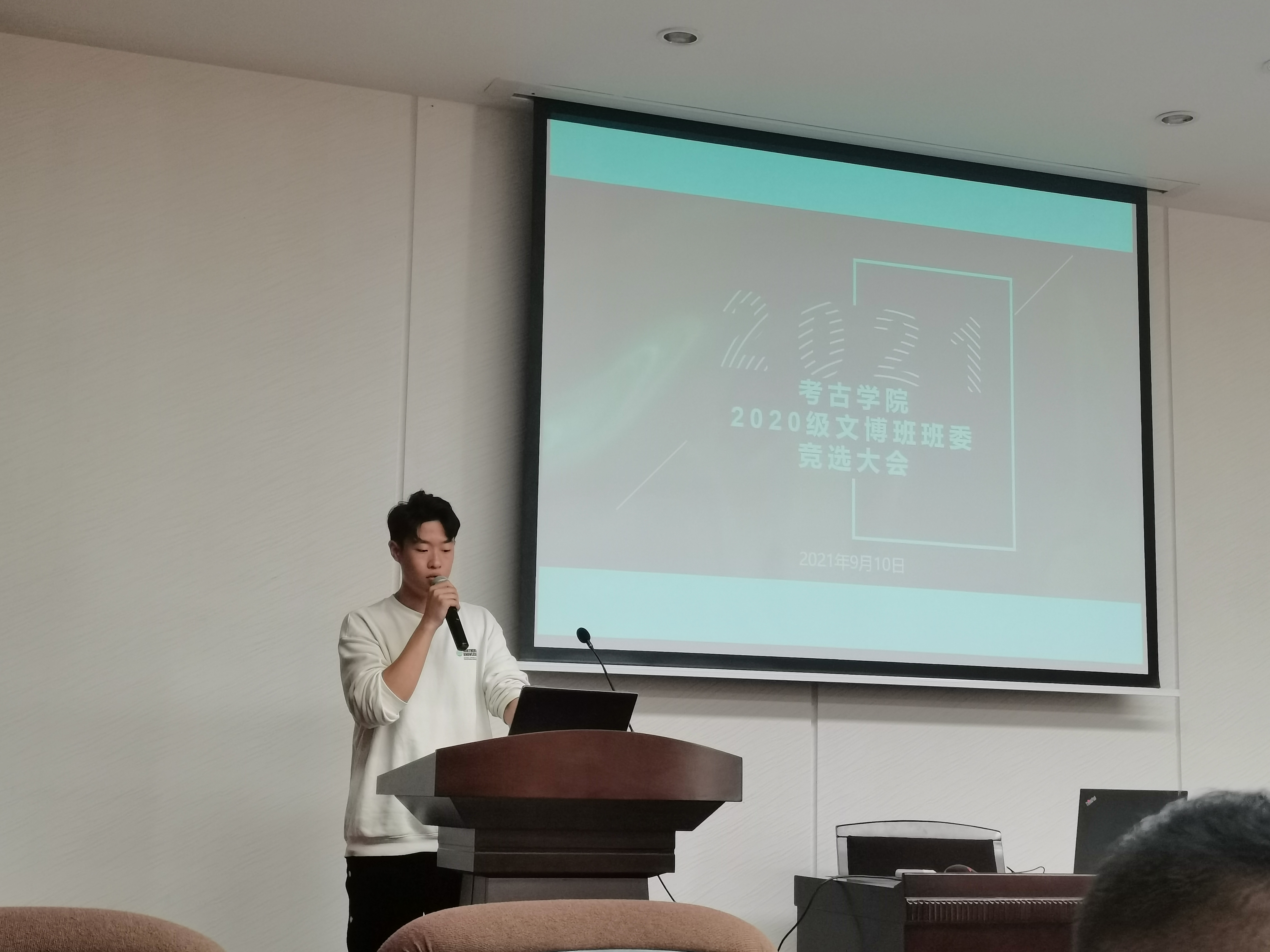 召开2020级本科生班委竞选大会。出席本次会议的有辅导员马嘉男老师,博士兼职辅导员靳涛老师和付金辉老师,以及2020级全体本科生。会议由黎宇菲同学和员子晴同学主持。