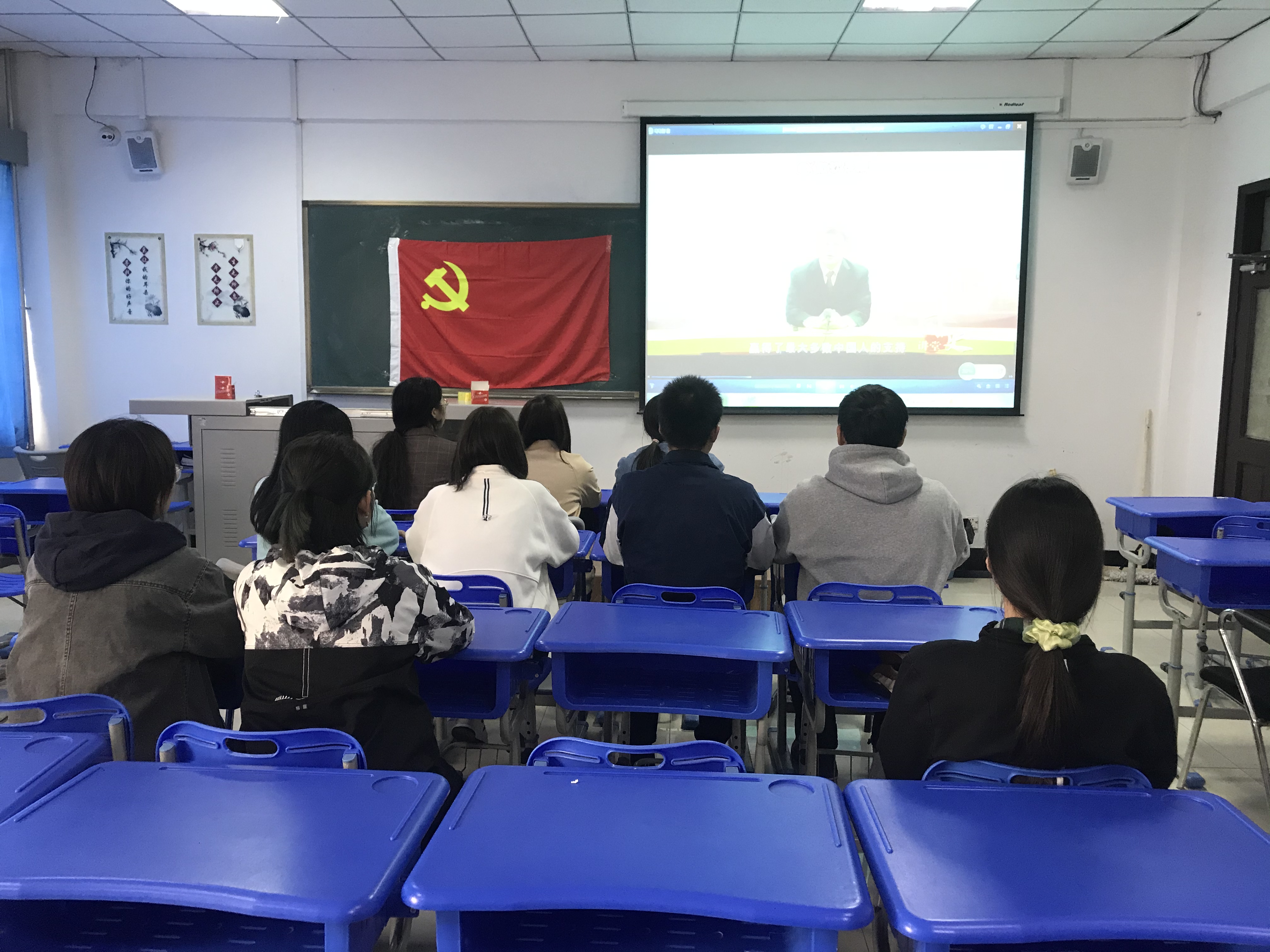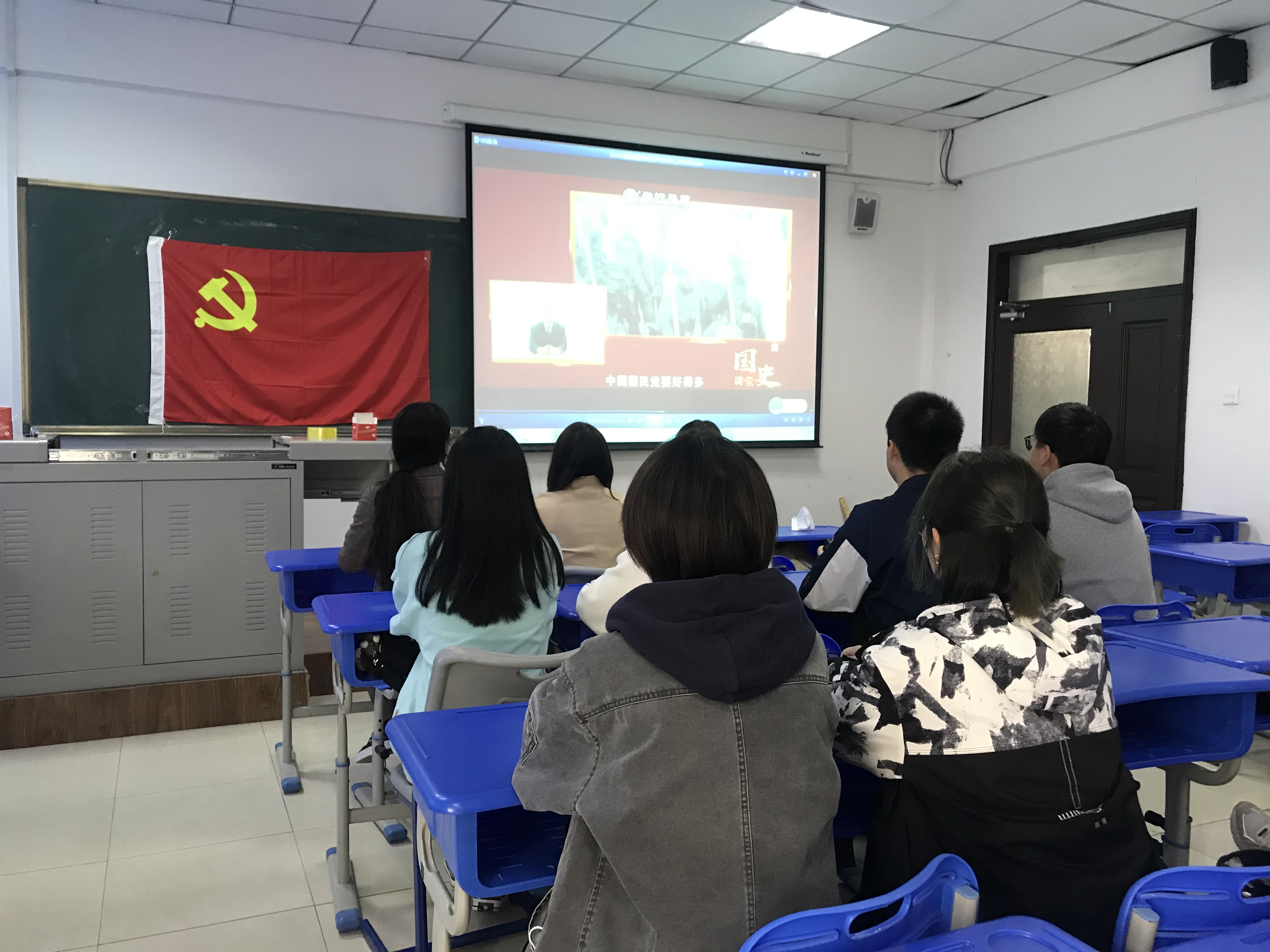 在经信教学楼A103教室,组织2021年第一期本科学生发展对象参加党史学习培训活动。