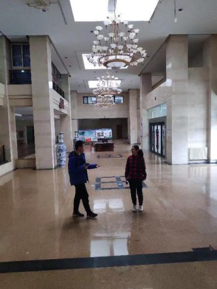 迎新晚会相关演职人员在行政楼一楼,对迎新晚会节目进行彩排与审核。