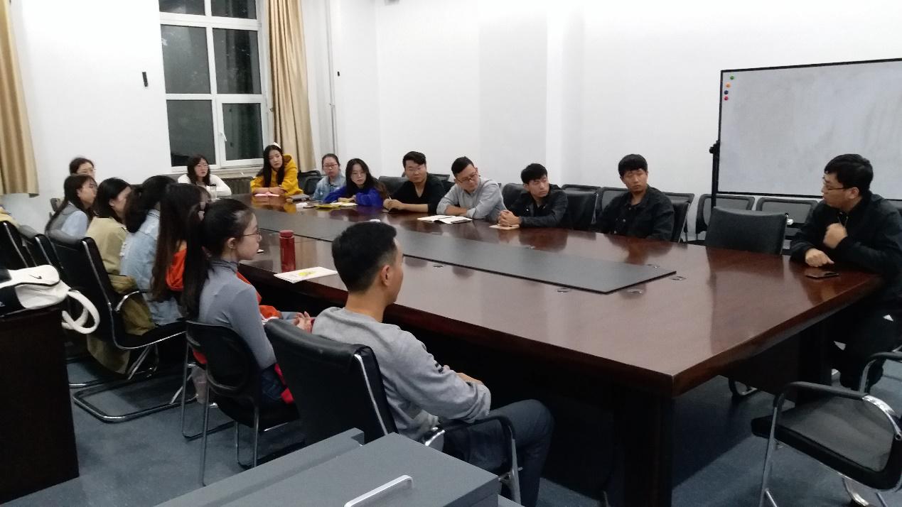 党委副书记兼副院长侯建峰老师和科研与研究生办公室主任魏来老师,同2019级研究生学生会干部和各班级委员,从感恩、成长、责任和健康四个方面进行了亲切交流。