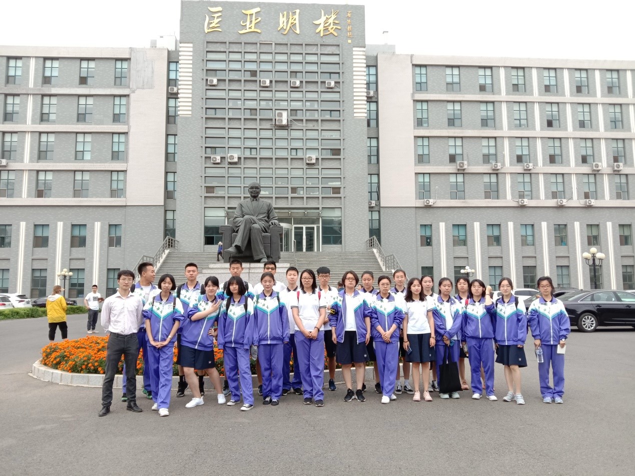 师生代表同东北师范大学附属中学师生、家长一起于匡亚明楼前合影。