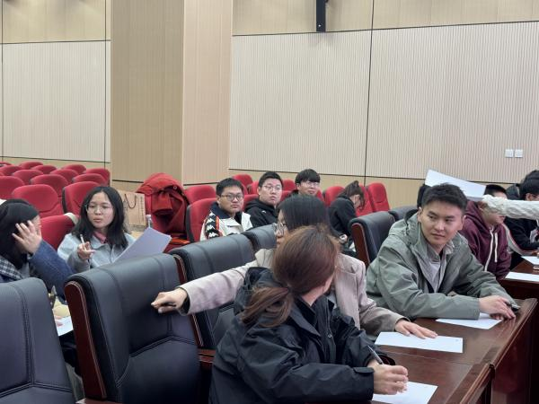 研究生辅导员老师依德日贡在正新楼一楼报告厅开展了一场别开生面的主题班会——“心灵沟通”。通过趣味互动与深度对话,同学们卸下“身份标签”,用新名字、新视角重新认识彼此,共同探索内心的温度与支持的力量。