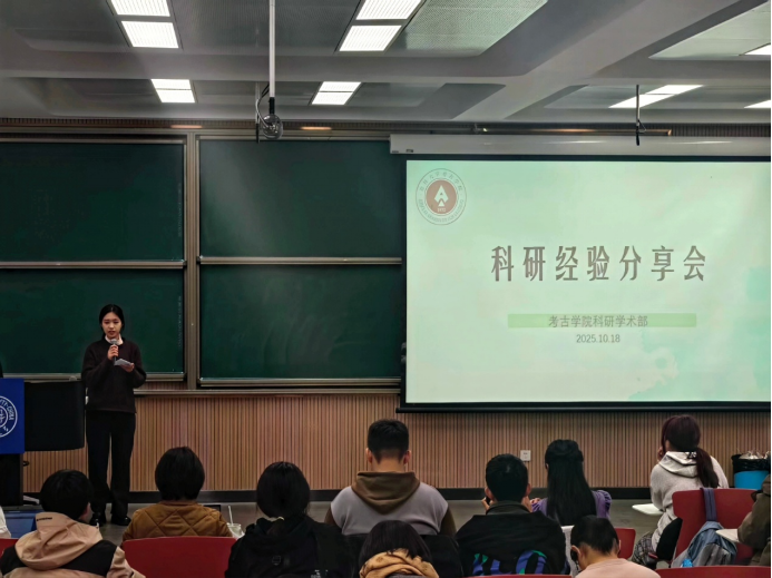 本次活动由科研学术部房钰轩主持,邀请到2022级拔尖基地班朱倩莹、2022级文物与博物馆学班何烨、2022级古文字班刘朋轩、2025级古文字学专业研究生李盈玉四位同学作为嘉宾,分享自己参与“大学生创新创业训练计划”与“挑战杯全国大学生课外学术科技作品竞赛”等科研竞赛经历与领悟。