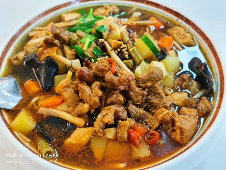 有时候吃太健康了对心理健康不好,只需要一口,就找到经典东北粗米线的味道,这种微科技、料理包但不多的感觉,刚刚好。