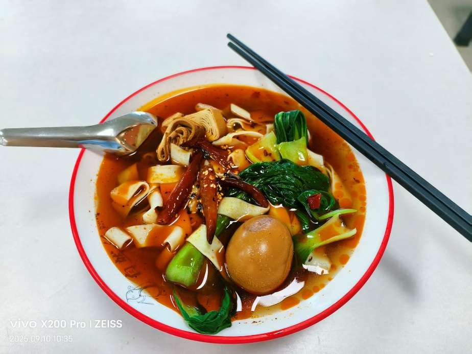 当然还有每个大学都有的五谷渔粉,它家的精髓是放多多的生菜,粉汤的热度将生菜烫熟的同时又不失蔬菜的爽脆感。