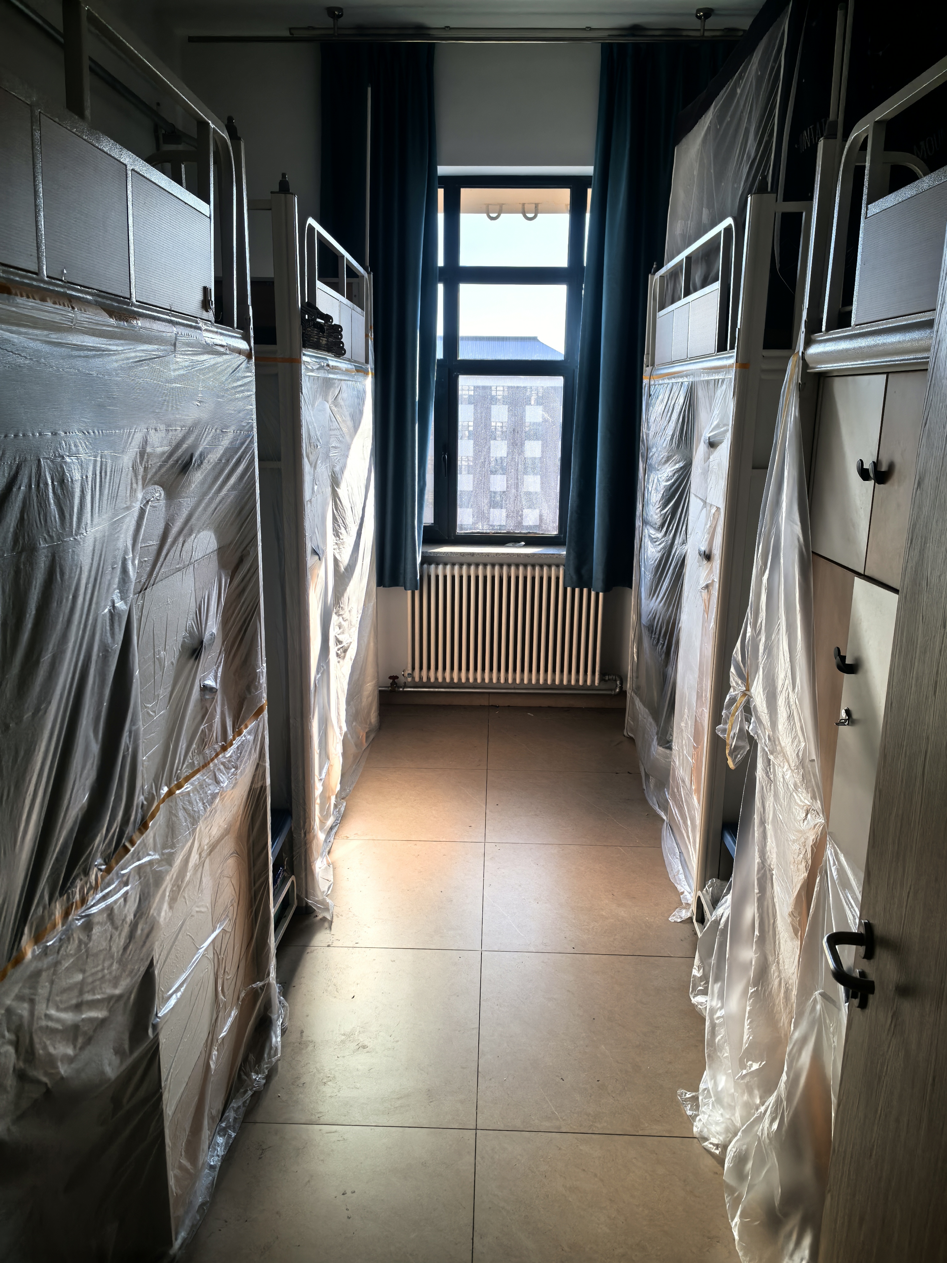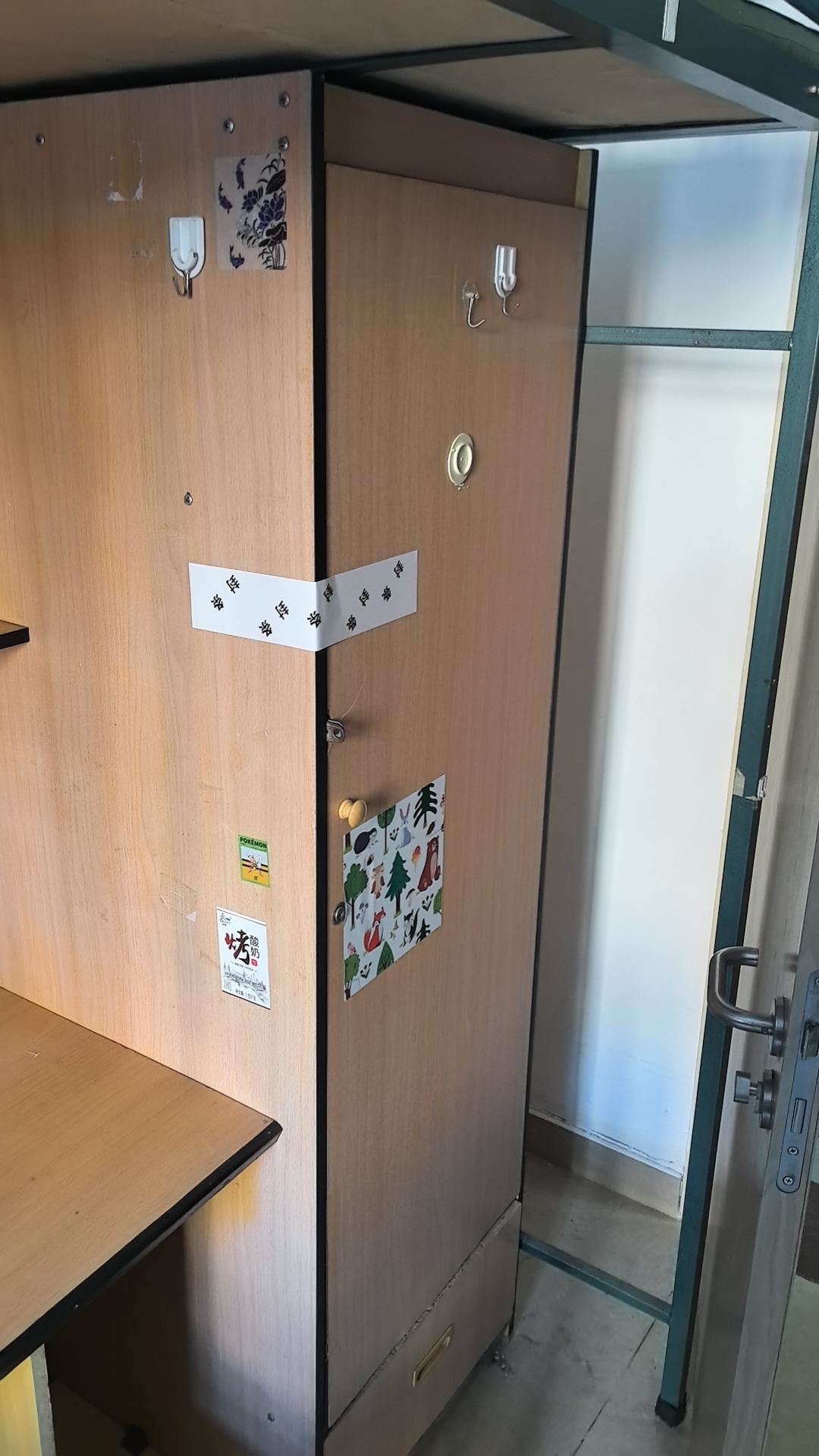 在了解整体施工情况后,辅导员走进学院研究生的寝室。对于尚未搬离物品的寝室,仔细查看室内电气设施现状,确认改造过程中需要学生提前整理的物品类别,在协助学生完成物品整理后,为部分寝室柜子粘贴封条,同时拍照记录,以便后续核对。同时了解施工对在校研究生的影响,确保研究生学习生活的安全与稳定。