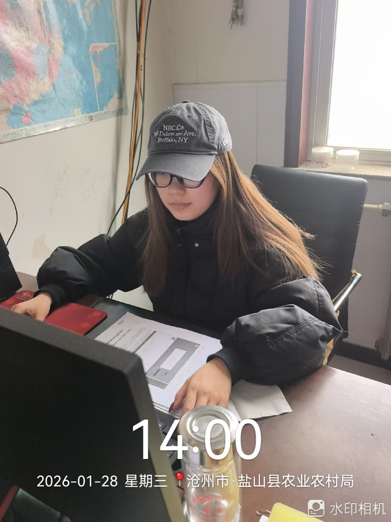 李思雨于1月19日至2月9日,前往盐山县农业农村局乡村振兴岗以文员身份开展为期22天的实践工作。在单位领导和同事的指导下,她快速熟悉工作流程,扎实完成各项本职任务,重点协助整理各村道路修建、乡村基础设施建设等相关资料,为乡村建设项目的有序推进提供了有力的数据与资料支撑。同时,她积极配合同事开展农村人居环境整治、产业发展调研等辅助工作,深入了解基层治理模式和农业农村政策落实情况,综合能力在实践中不断提升。李思雨始终谦逊好学、踏实肯干,灵活运用校园所学保质保量完成任务,优异表现获单位领导与同事高度肯定。