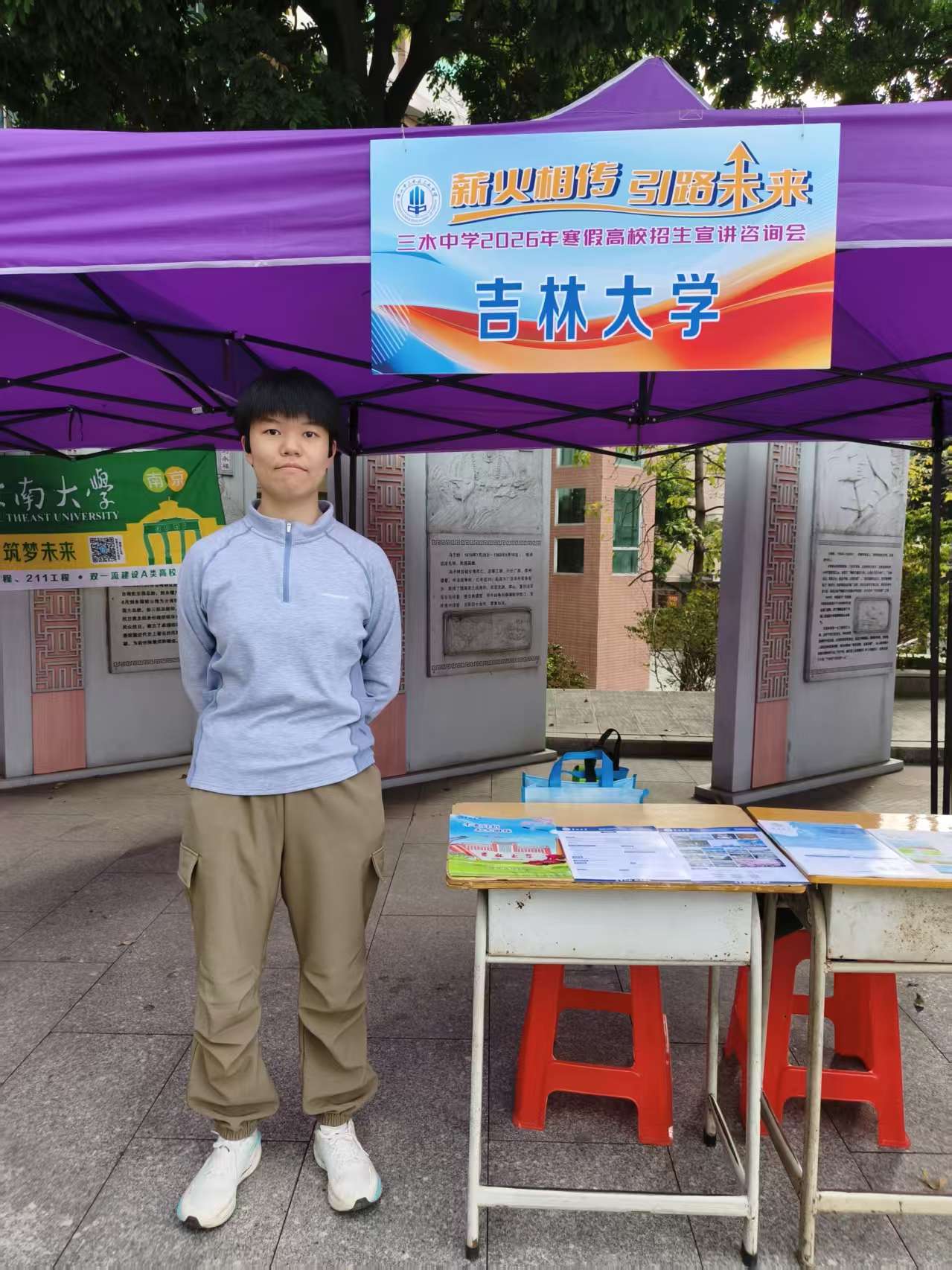 在东南地区,邹雨翘于2026年2月6日为高中的学弟学妹们送去了北国春城的问候与鼓励。本次宣讲设置摊位咨询与专场宣讲两大环节,以高三学子为主要受众,同时覆盖全校各年级学生。邹雨翘结合自身在吉大的学习生活经历,为同学们逐一解答升学、择校、专业选择等方面的疑惑,还借助PPT,系统讲解西瓜视频