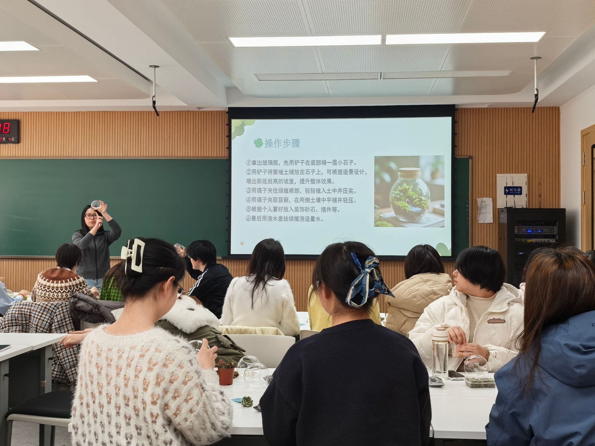 学生会心理健康部在敬信教学楼E区107教室成功举办春日充“植”——绿植微景观DIY活动。